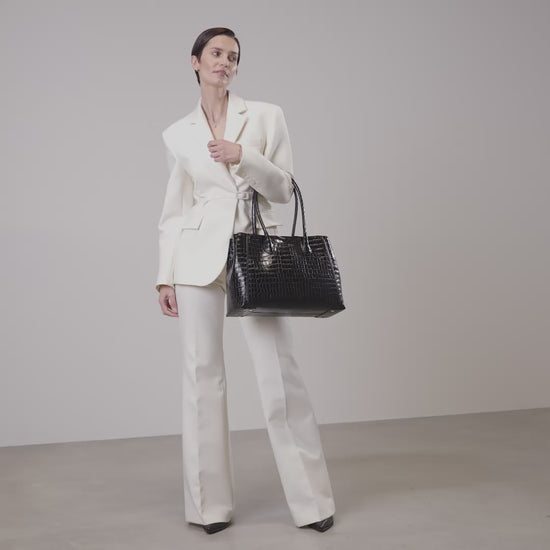 Honoré Cloe Midi croco sort læder håndtaske lavet af kalveskind