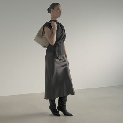 - Materiale: Premium taupe kalveskindslæder med en raffineret tekstur
