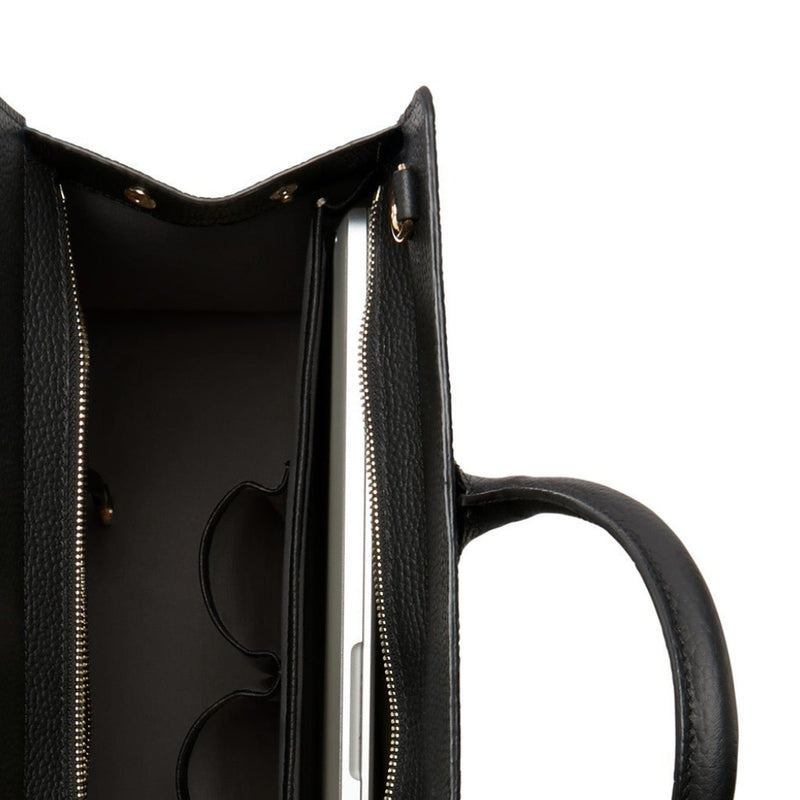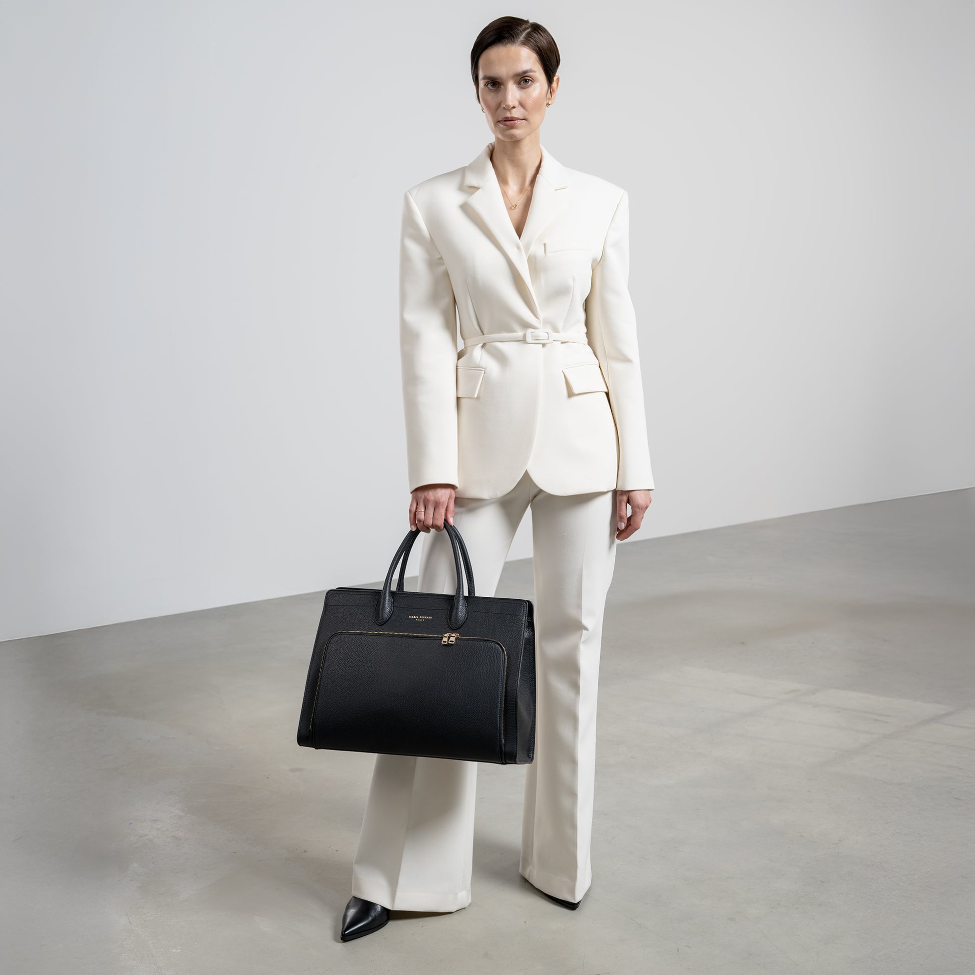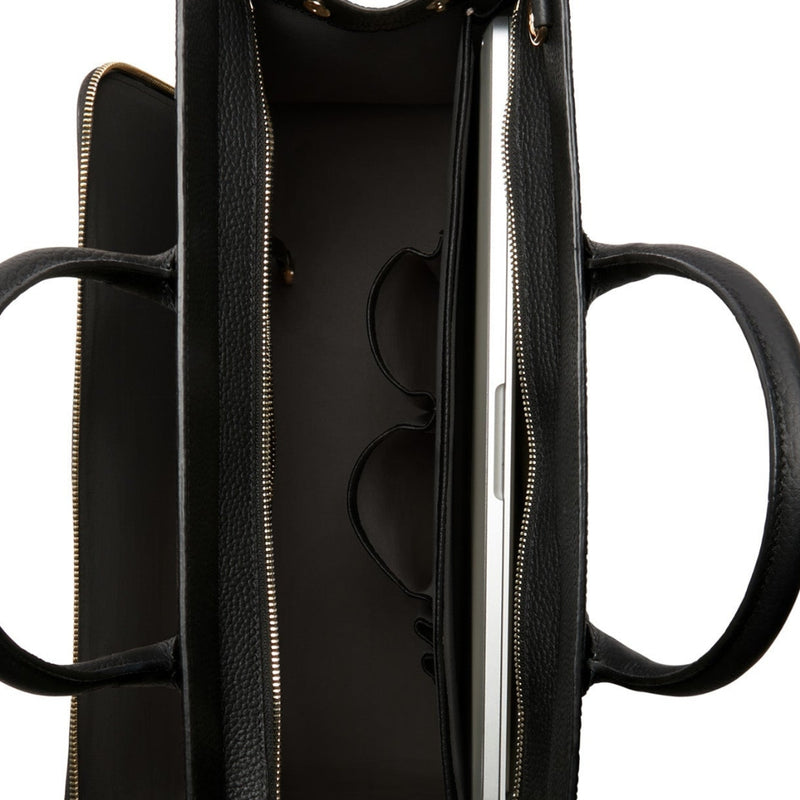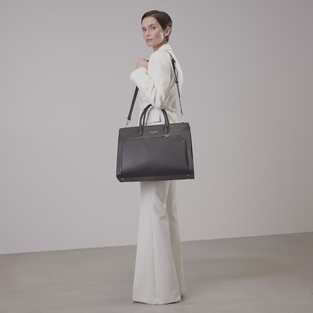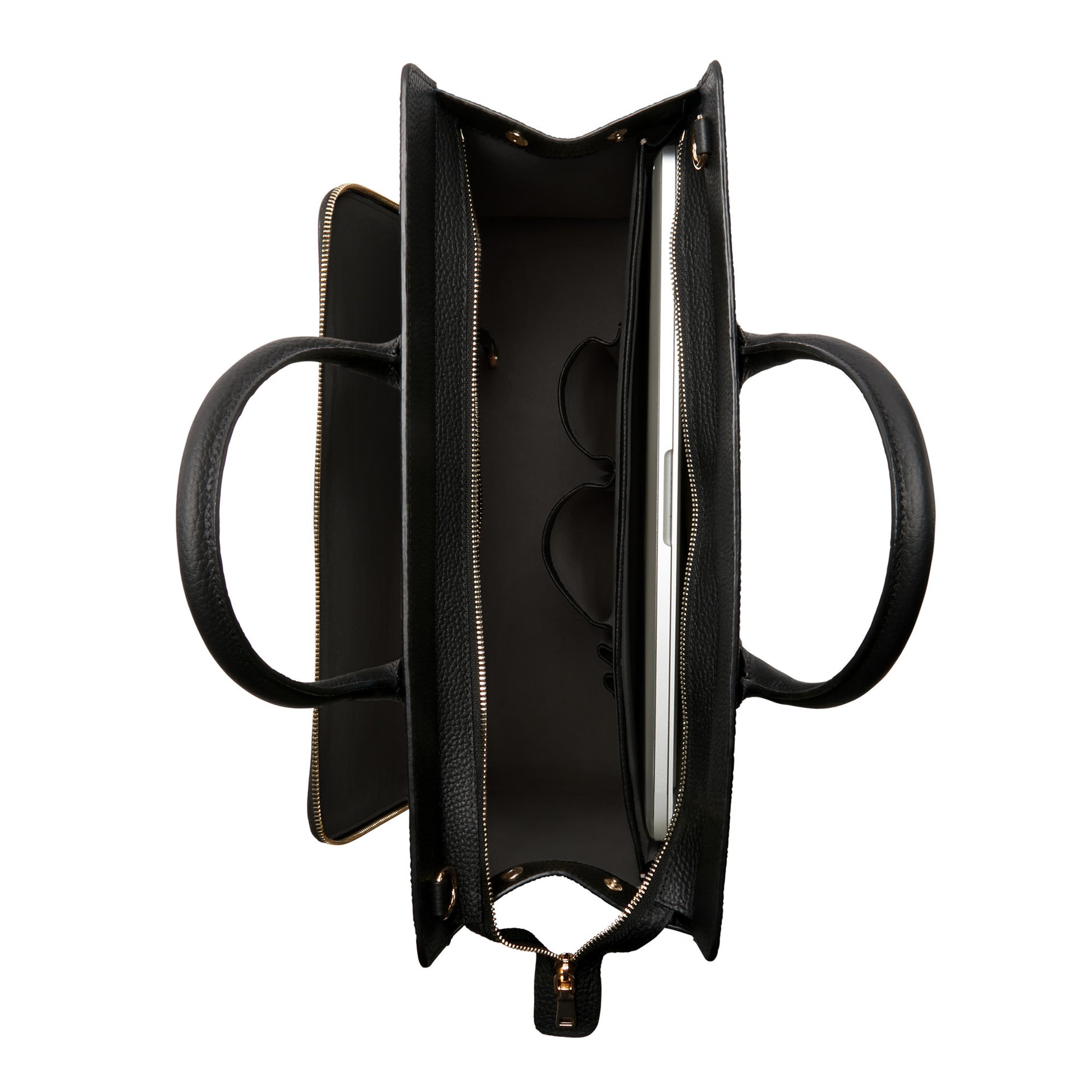 Honoré Nadine sort håndtaske i kalveskind med plads til 16,4" laptop