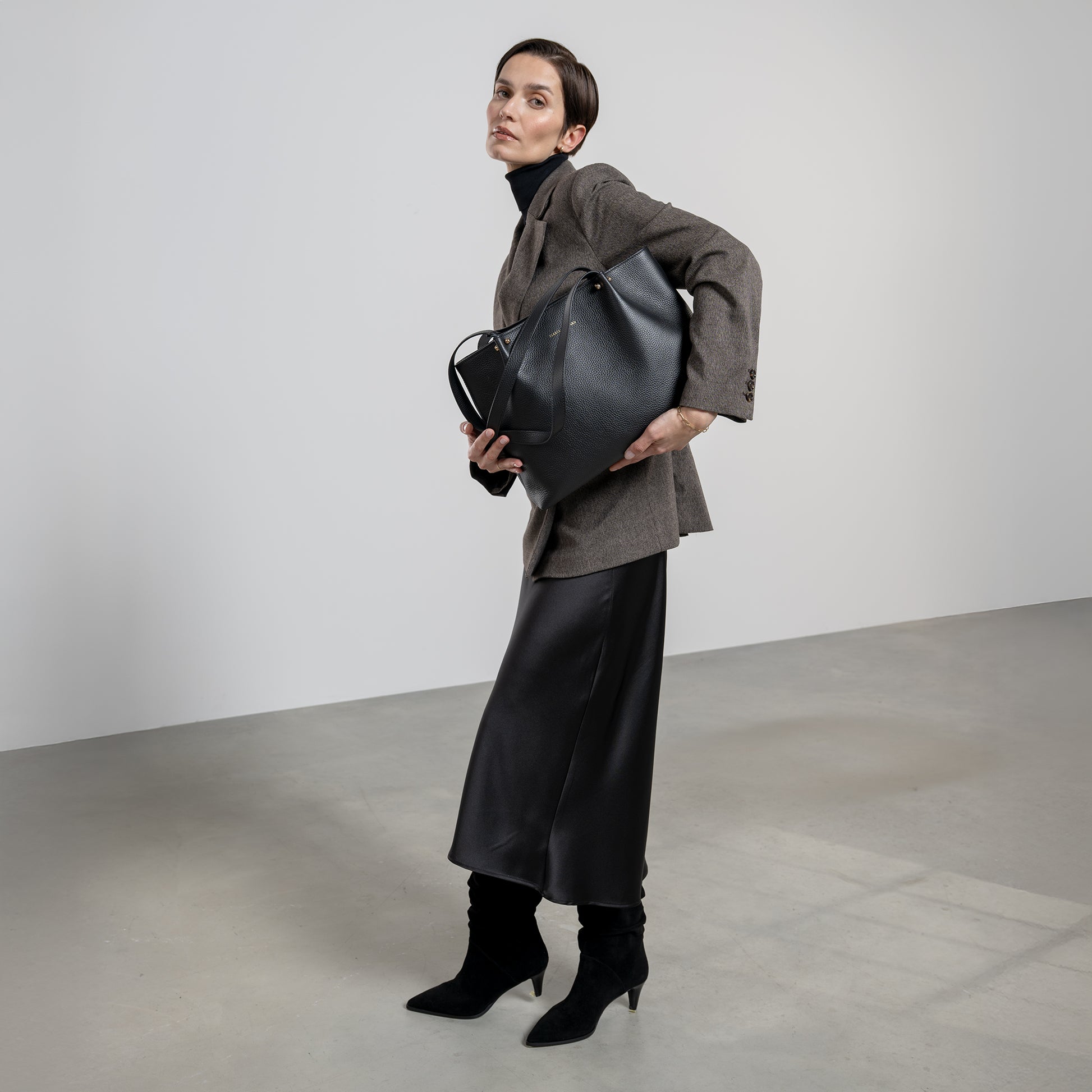 Honoré Nata sort læder indkøbstaske af kalveskind