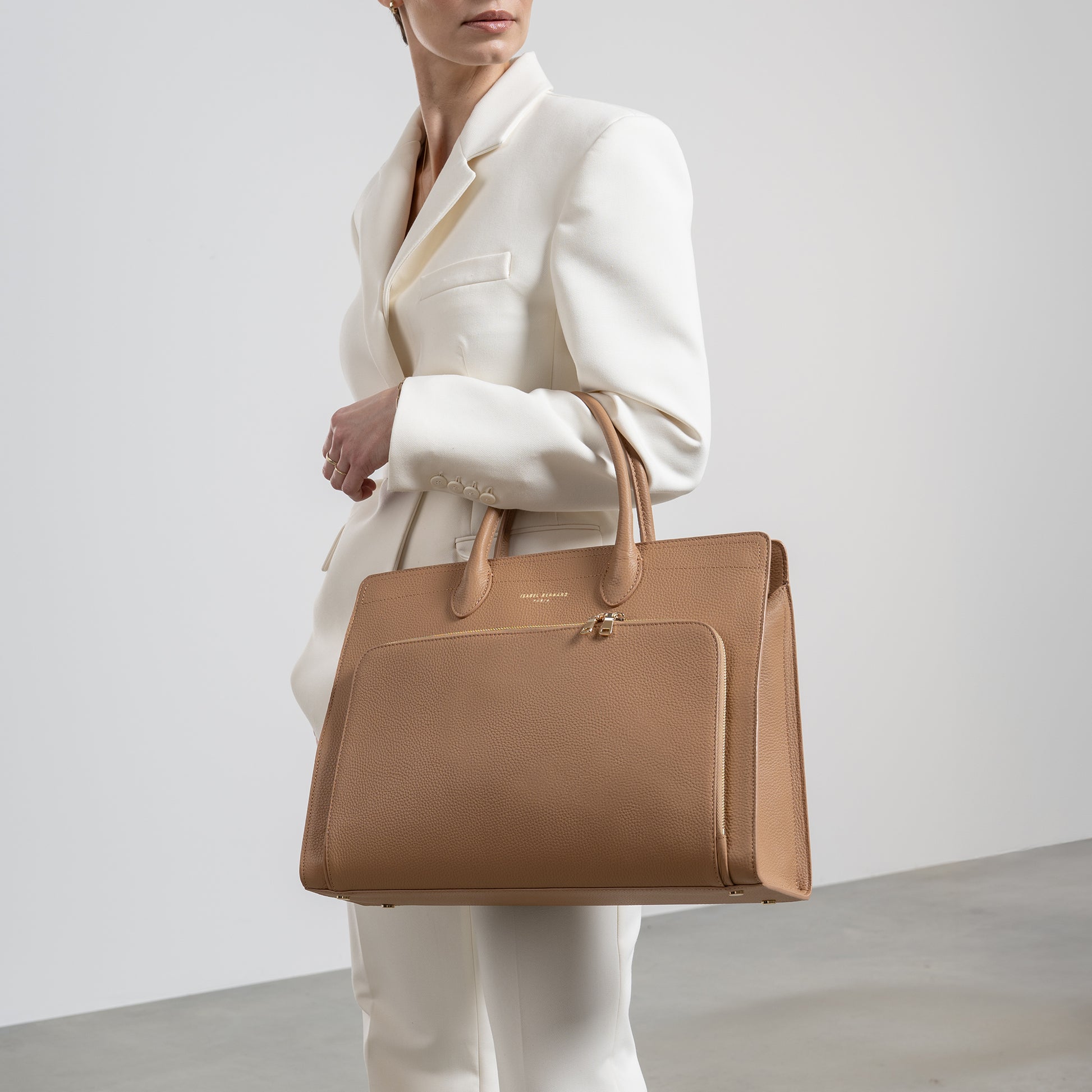 - Abgestimmte Eleganz: Passendes camelfarbenes Kalbsleder sorgt für einen nahtlosen und eleganten Look.