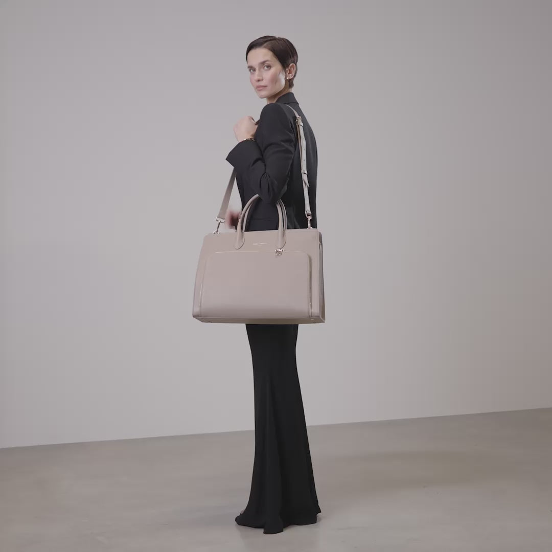 Honoré Nadine Handtasche aus taupe Kalbsleder mit 16,4"-Laptopfach