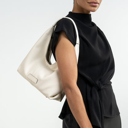 - Material: Piel de becerro crema de primera calidad con una textura refinada