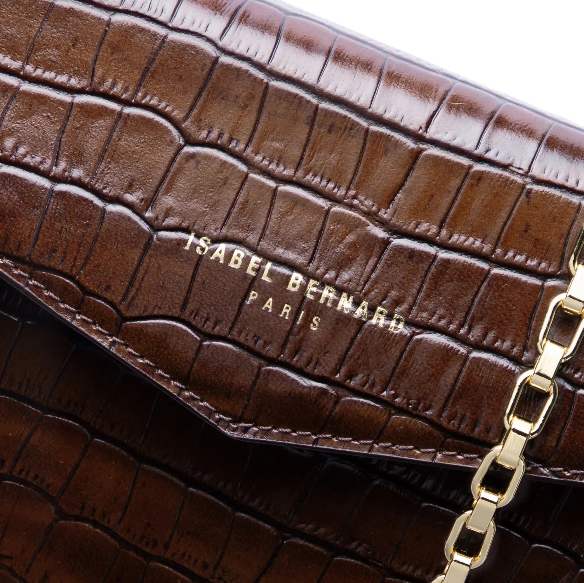 Honoré Lina Clutch Marrón Croco Con Cadena De Hombro Desmontable