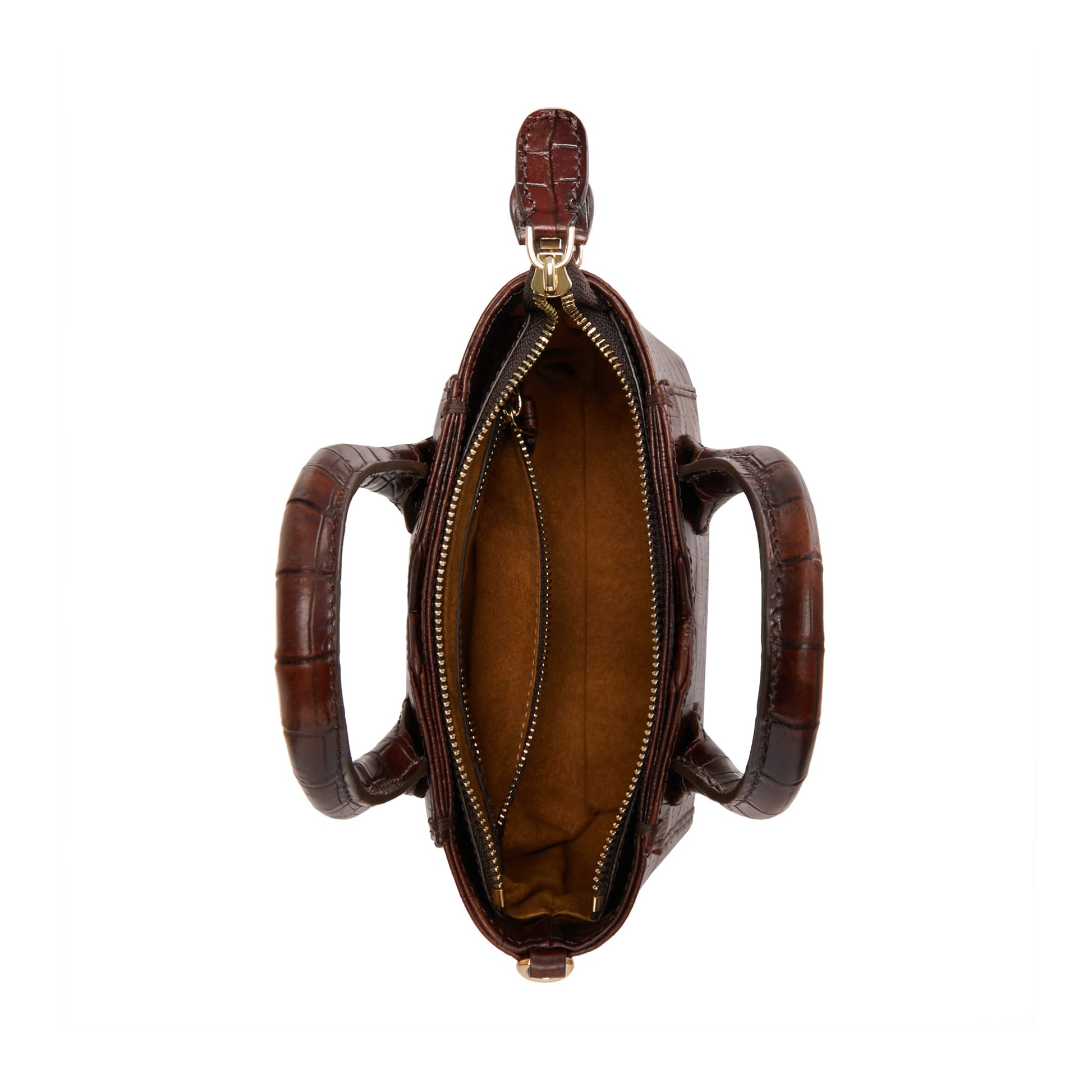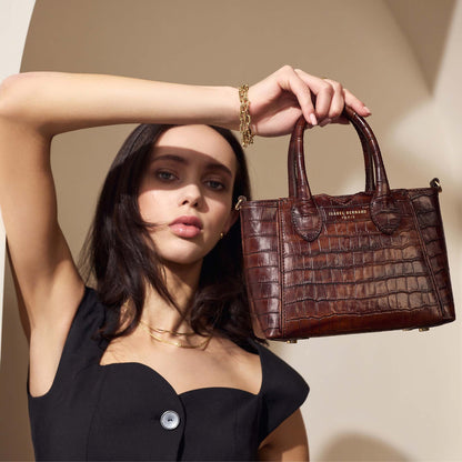 Honoré Cloe Mini marrón croco bolso de mano de cuero vacuno