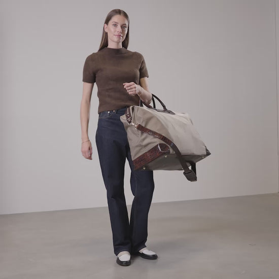 Descubra el compañero de viaje perfecto con nuestras bolsas de viaje Du Louvre. También disponible en los tamaños: pequeño y mediano, y en los colores atemporal negro, estilizado azul y elegante topo.