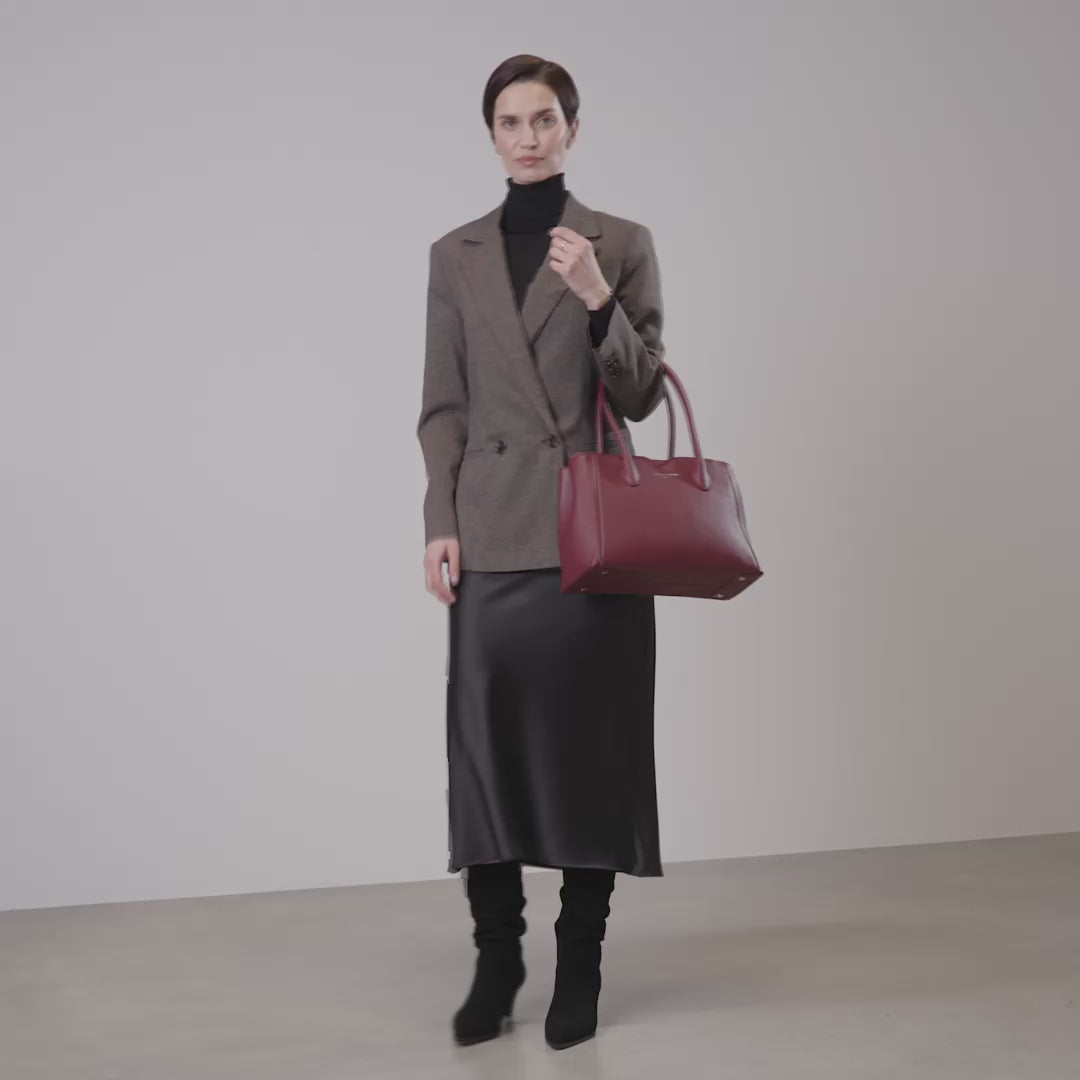 Honoré Cloe Midi bordeaux rouge sac à main en cuir de veau