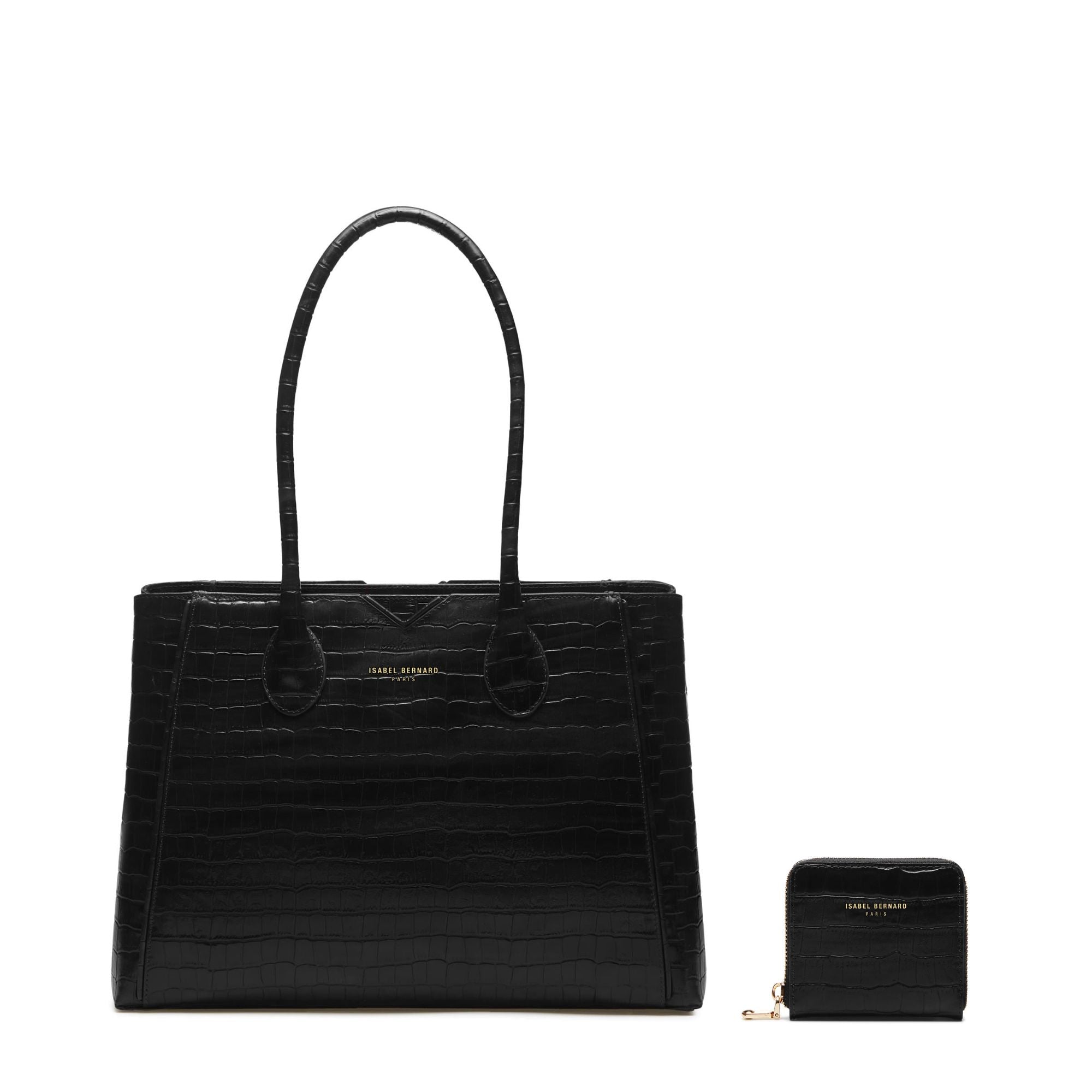 Cadeau d'Isabel sac à main en cuir de veau croco noir et portefeuille