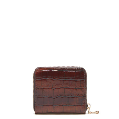 Portefeuille à fermeture éclair en cuir de veau brun croco