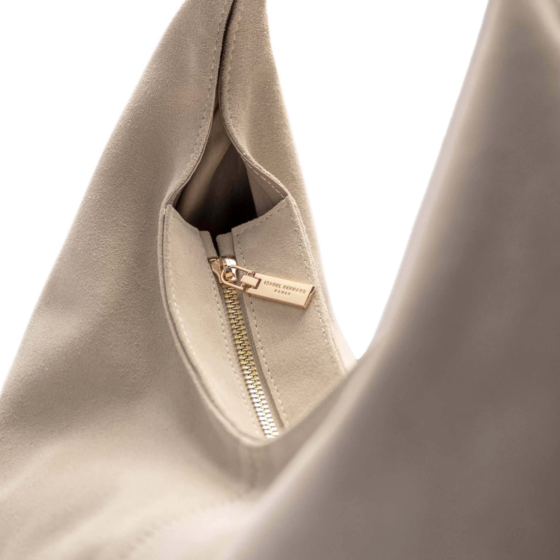 Découvrez le sac à épaule en daim crème Honoré Grace d'Isabel Bernard—un mélange raffiné d'élégance et de praticité, conçu pour la femme moderne qui apprécie le style intemporel et la fonctionnalité.