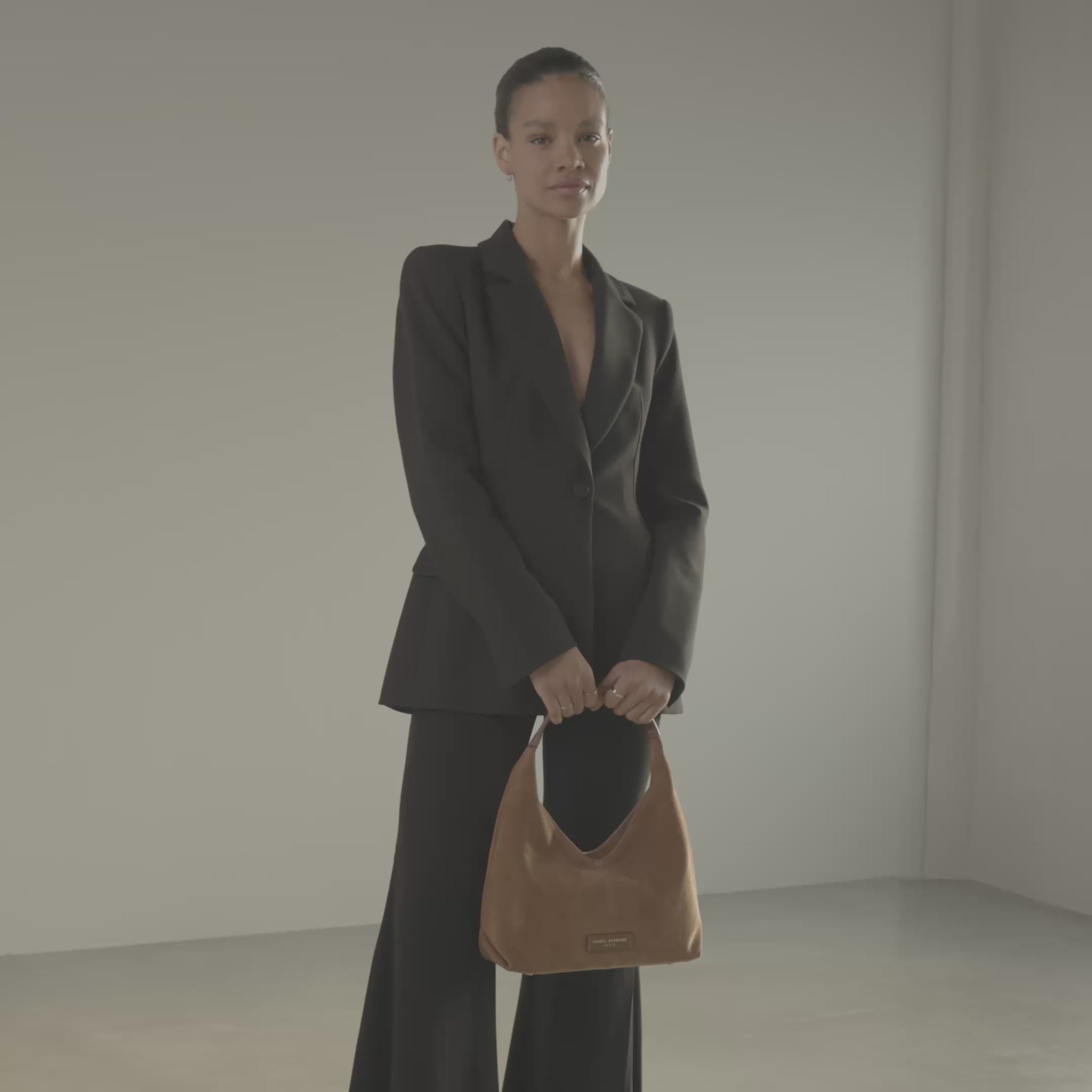 Présentation de la Isabel Bernard Honoré Grace Mini Sac à main en daim marron-Un accessoire compact mais luxueux conçu pour la femme moderne et sophistiquée qui apprécie l'élégance et la praticité.