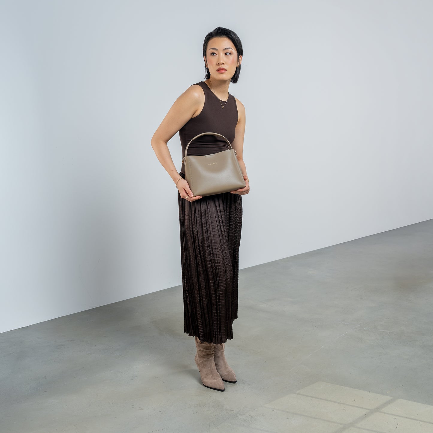 - Design Élégant : Silhouette structurée dans une teinte taupe raffinée qui convient à toutes les occasions.