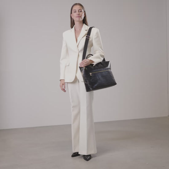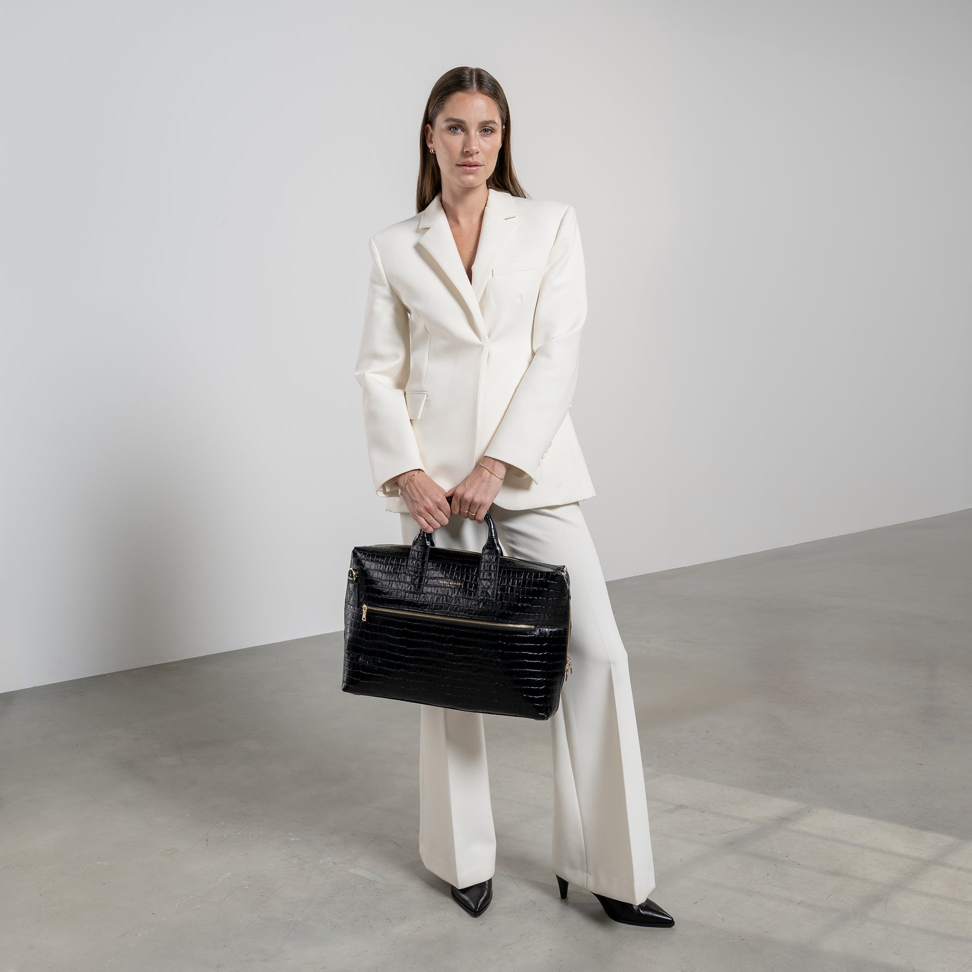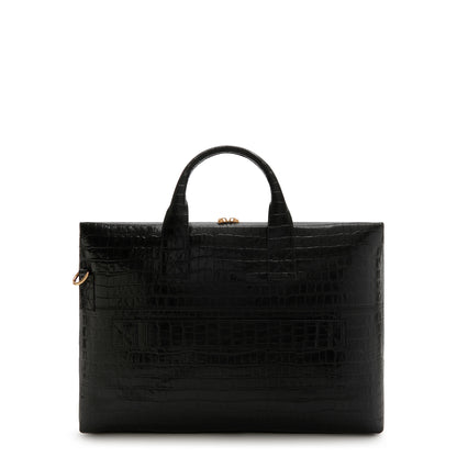 Honoré Anique sac croco noir en cuir avec espace pour ordinateur