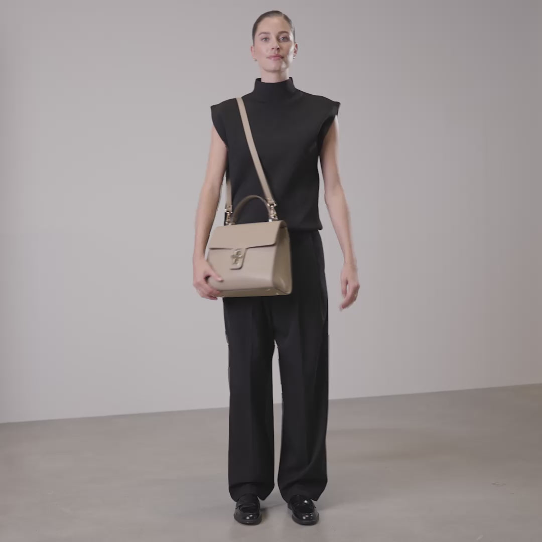Femme Forte Simone Midi taupe en cuir sac a main en cuir de veau