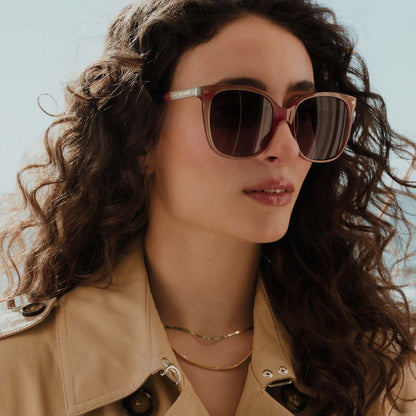 La monture, fabriquée en acétate de qualité supérieure, est connue pour sa durabilité et sa flexibilité. Ce matériau léger assure un ajustement confortable et une qualité durable. L'acétate est également hypoallergénique, ce qui en fait un excellent choix pour les personnes ayant la peau sensible. La teinte beige, associée à la qualité de l'acétate, fait de ces lunettes de soleil un accessoire indispensable pour tout voyage, où style et confort se rejoignent pour mettre n'importe quelle destination sous un jour à la mode.