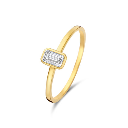 Baguette Genevieve anillo de oro de 14 quilates con bianco zircone