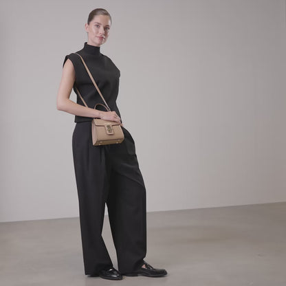 Scoprite lo stile in dimensioni compatte con la mini borsa Simone di Femme Forte. Realizzata con la migliore pelle di vitello, questa borsa incarna lusso e durata. La pelle idrorepellente assicura che i vostri oggetti di valore rimangano sempre protetti, qualunque sia il tempo. L'elegante chiusura a scatto non solo garantisce la sicurezza, ma aggiunge anche un dettaglio di stile al design minimalista.