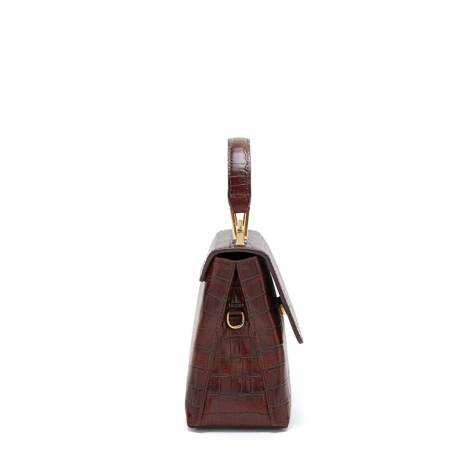 - Pelle di vitello marrone con goffratura coccodrillo e finitura lucida dall'Italia