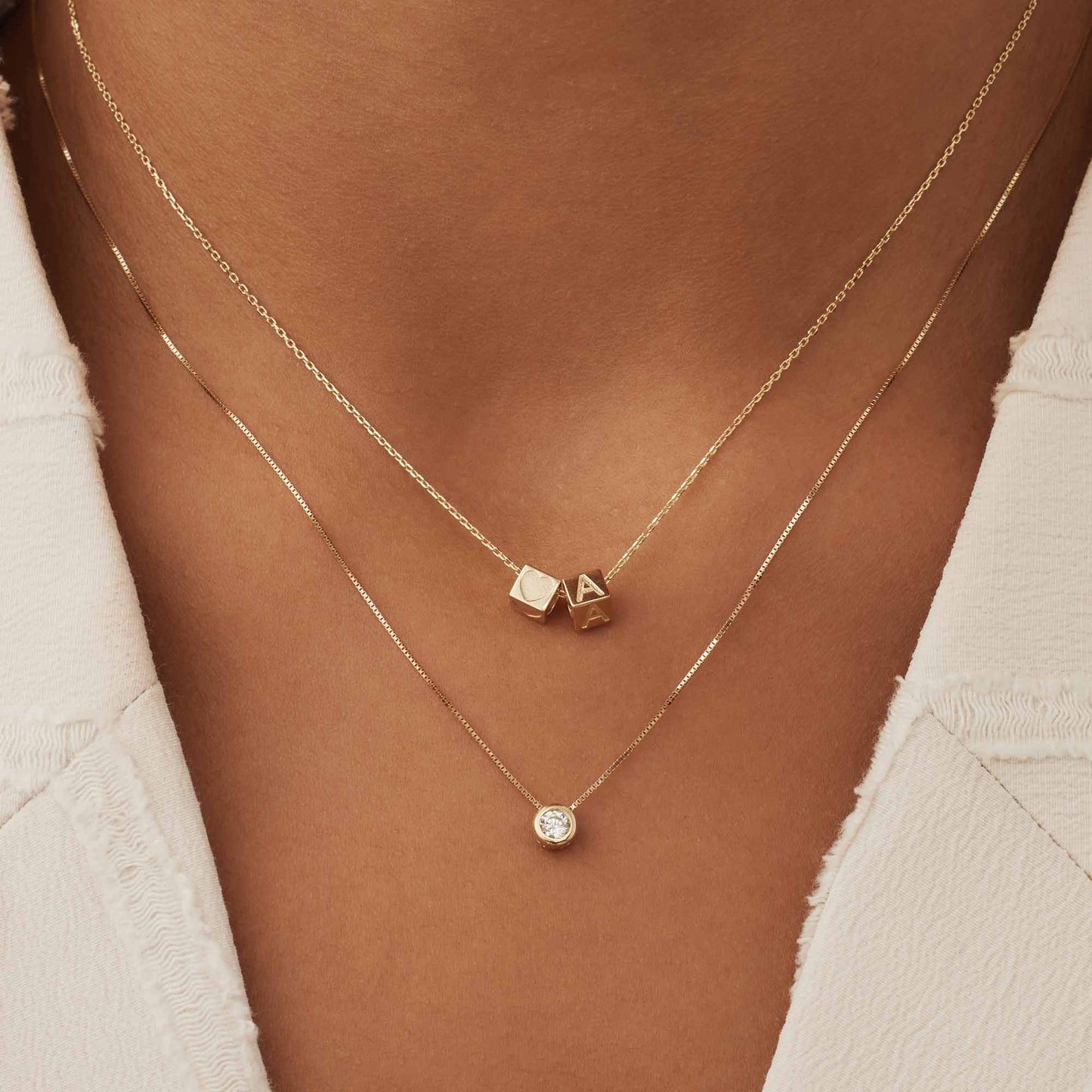 Il ciondolo a forma di cubo, realizzato in oro di alta qualità a 14 carati, mostra un cuore finemente inciso che simboleggia amore e legame. La collana d'oro che lo accompagna completa perfettamente il ciondolo, creando un insieme armonioso ed elegante che valorizza senza sforzo qualsiasi outfit.