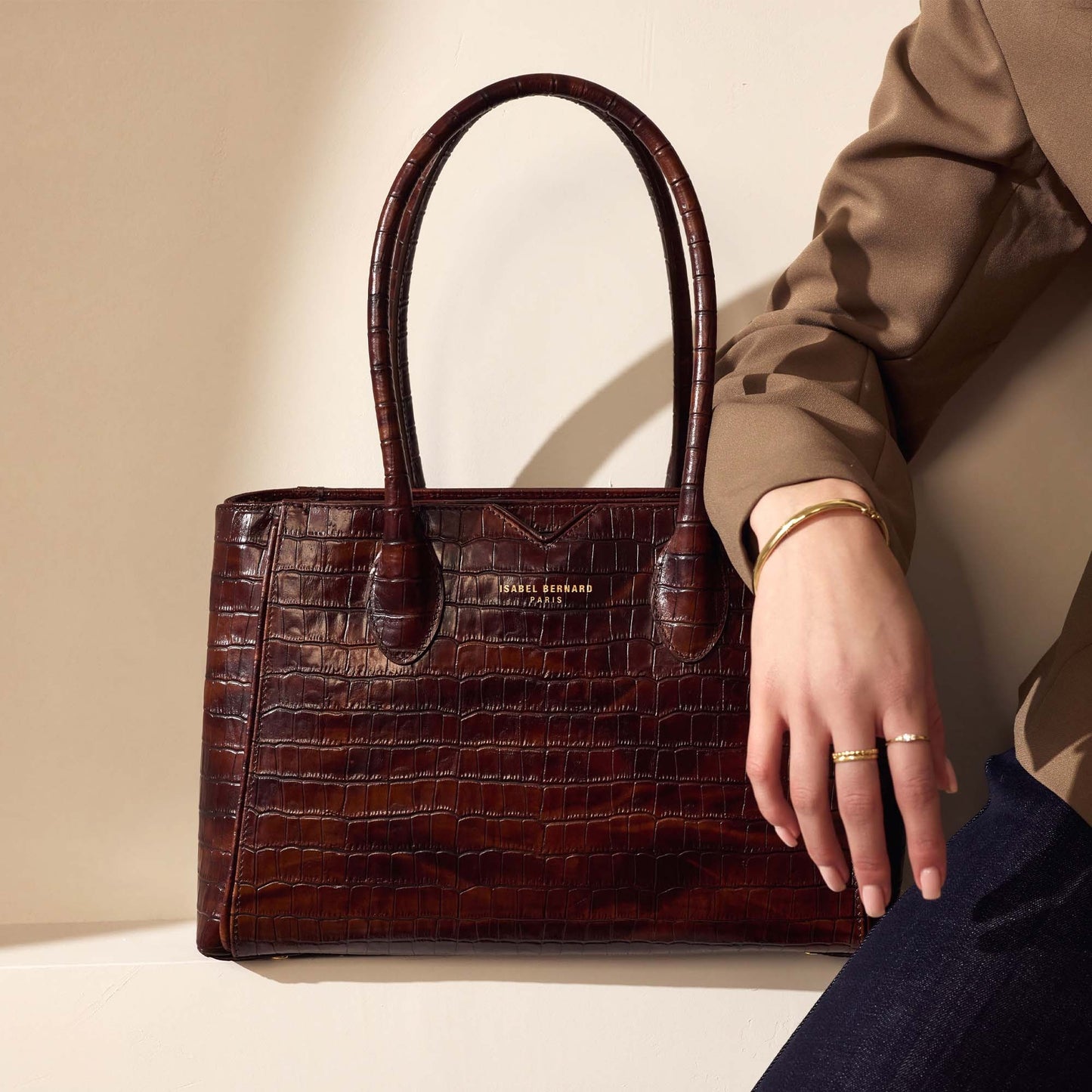 Honoré Cloe Midi marrone croco borsetta in pelle di vitello