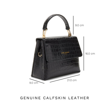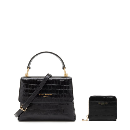 Cadeau d'Isabel set regalo con borsa in pelle croco nera e portafoglio