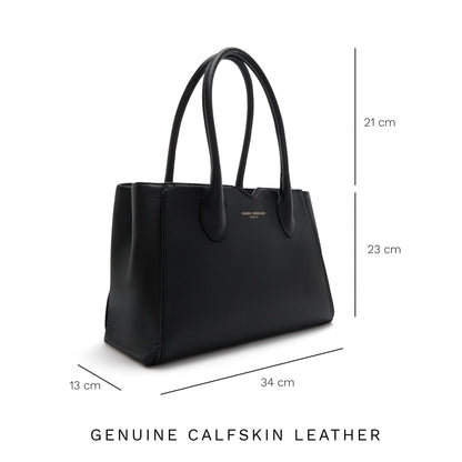 - Tijdloos Ontwerp: Vervaardigd uit bijpassend zwart kalfsleer voor een gepolijste en gecoördineerde uitstraling.