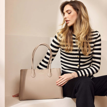 - Gecoördineerde Elegant: Ontworpen in bijpassend taupe kalfsleer voor een naadloze en gepolijste uitstraling.