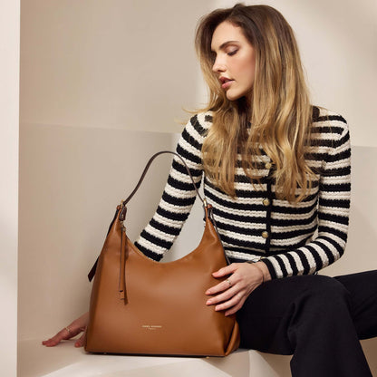 Maak kennis met de Honoré Muriel schoudertas, een harmonieuze mix van tijdloos design en praktische functionaliteit. Gemaakt van premium cognac kalfsleer, is deze tas een essentieel accessoire voor de moderne, professionele vrouw.