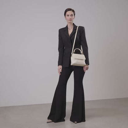 Ervaar tijdloze elegantie met de Femme Forte Heline handtas, vervaardigd uit hoogwaardig crèmekleurig kalfsleer. Het Italiaanse ontwerp en de nauwgezette afwerking maken het een essentieel accessoire voor de verfijnde, professionele vrouw.