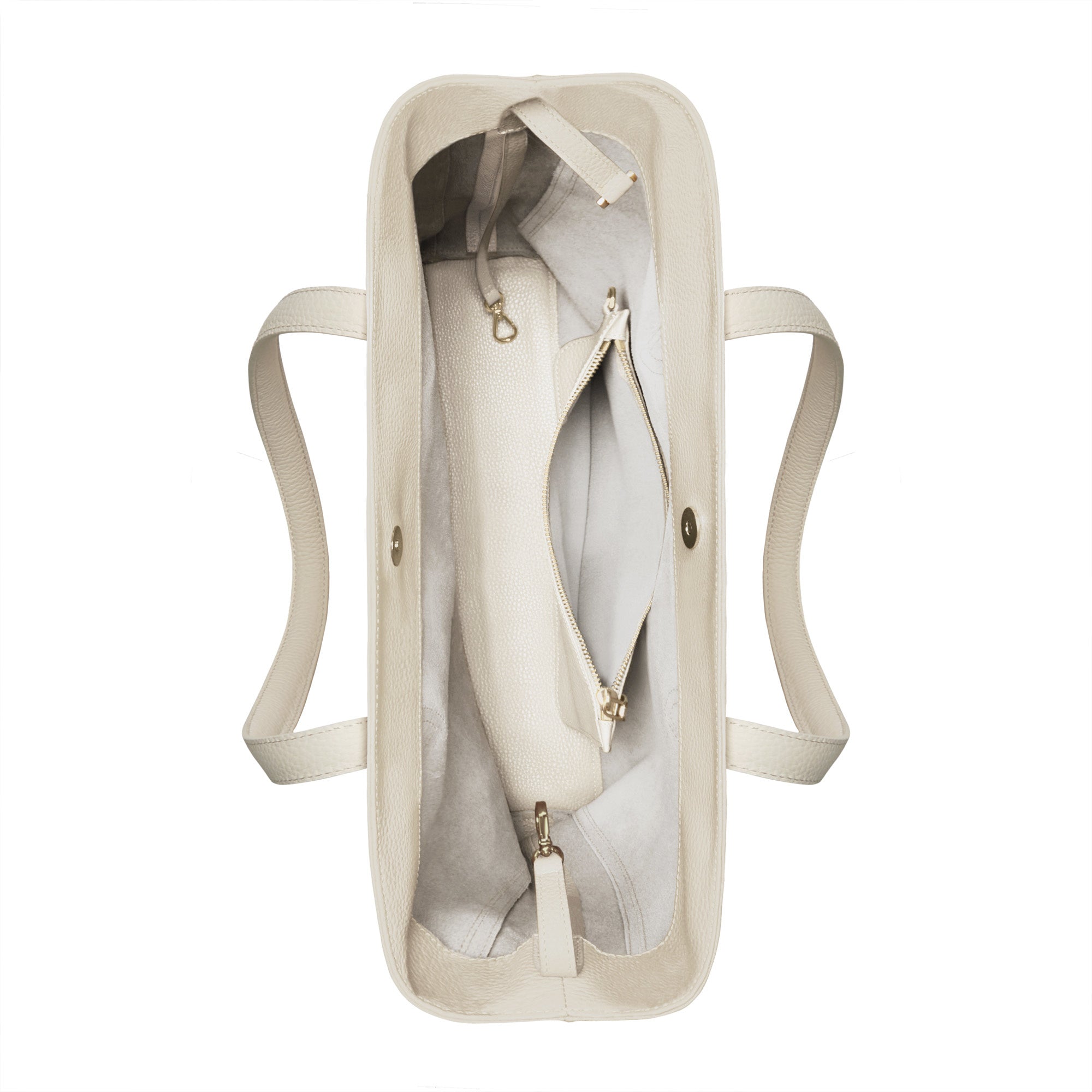 Ontdek tijdloze elegantie met de Crèmekleurige Kalfsleren Shopper. Ontworpen voor de moderne vrouw, combineert deze verfijnde shopper moeiteloze klasse met dagelijks gebruiksgemak.