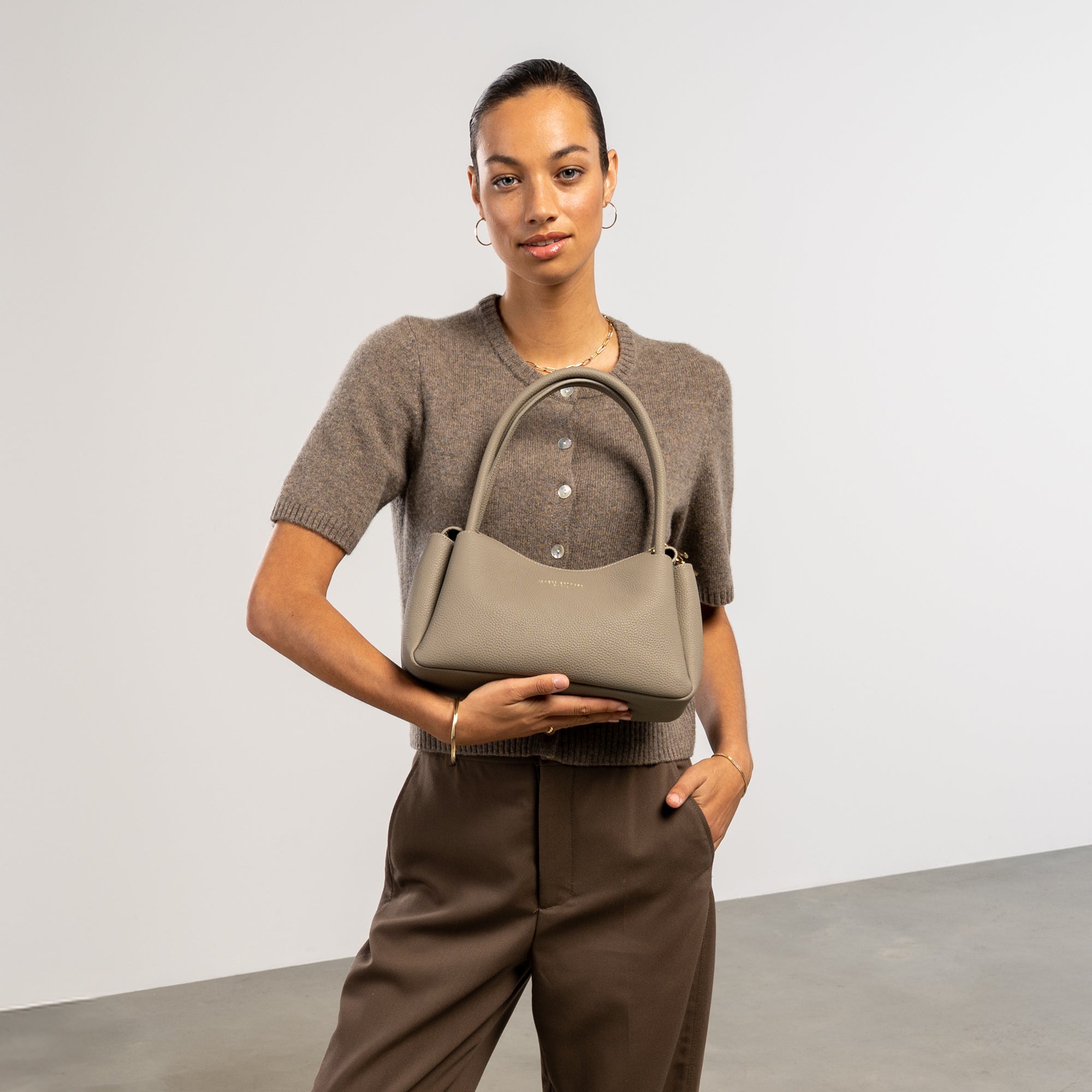- Neutrale elegantie: Gemaakt van hoogwaardig taupekleurig kalfsleer voor een verfijnde dagelijkse look