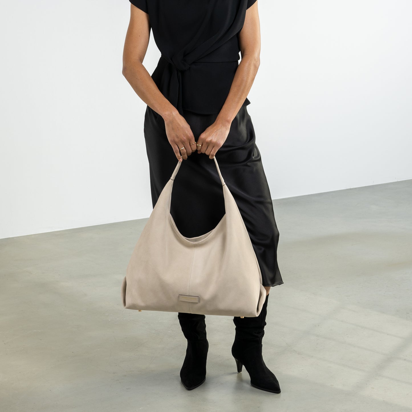 - Materiaal: Luxe crème suede met een zachte, fluweelachtige textuur