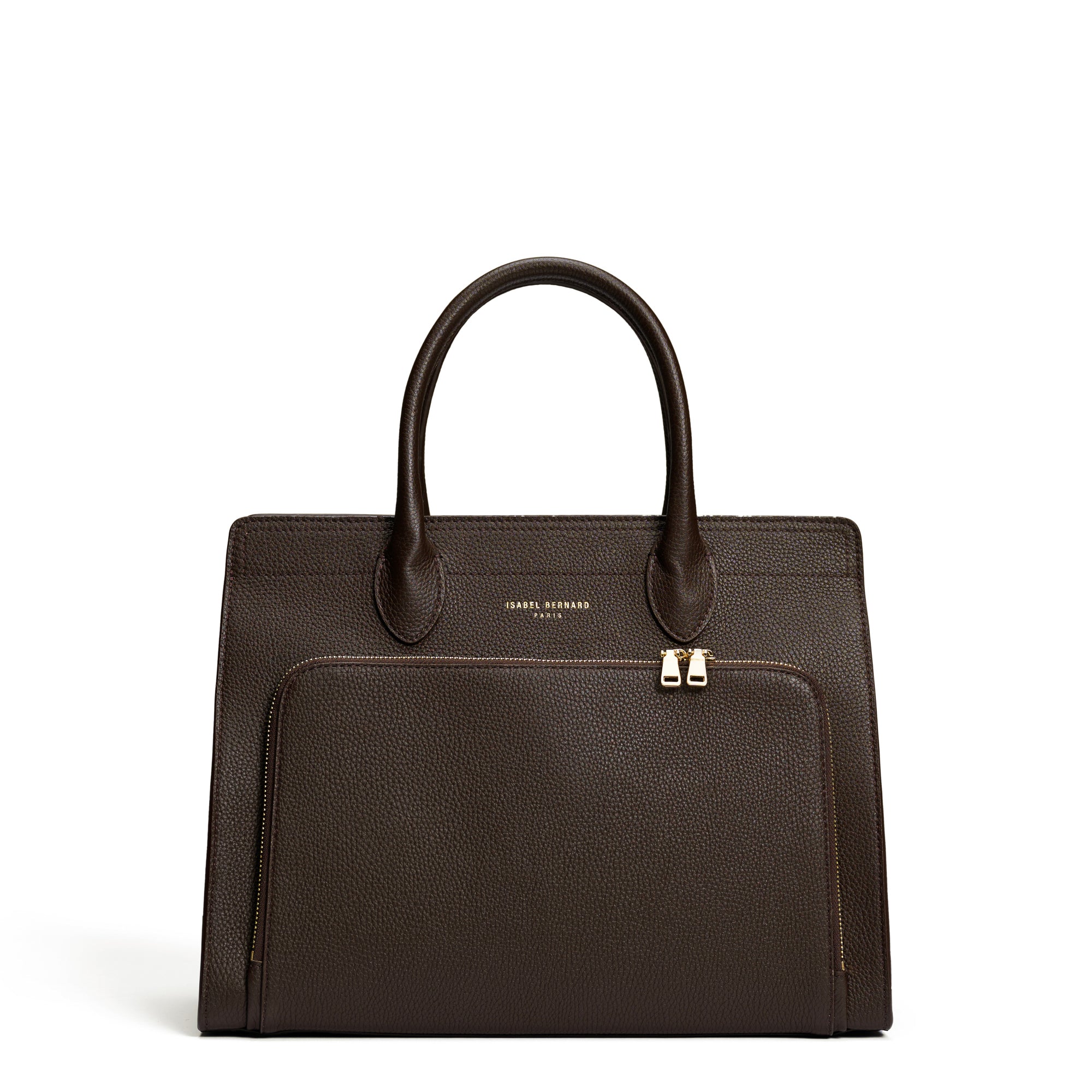 Maak kennis met de Isabel Bernard Honoré Nadine 13-inch Donkerbruine Kalfsleren Handtas—een moeiteloos elegante klassieker voor de vrouw die klassieke stijl met vertrouwen draagt. Het rijke donkerbruine leer en de verfijnde vorm zorgen voor een stijlvolle mix van traditie en moderne functionaliteit.