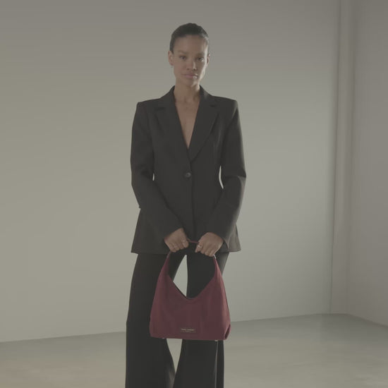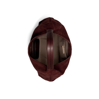 Introductie van de Isabel Bernard Honoré Grace Mini Donker Bordeaux Suède Handtas – een compact maar luxueus accessoire ontworpen voor de moderne, verfijnde vrouw die waarde hecht aan elegantie en functionaliteit.
