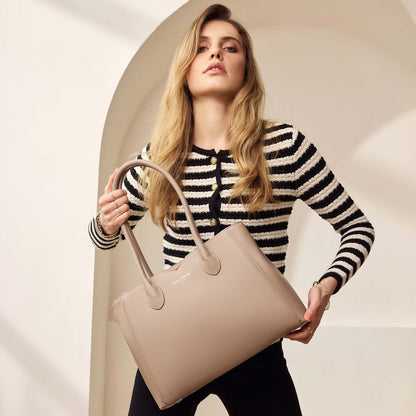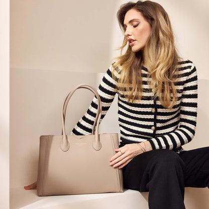 - Hoogwaardig Kalfsleer: Luxe taupe kalfsleer, bekend om zijn duurzaamheid en tijdloze uitstraling.
