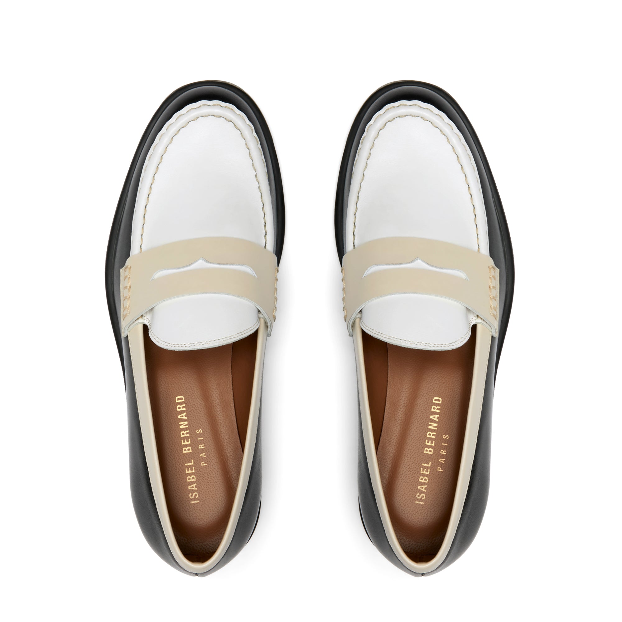 Vendôme Blandine zwart en wit kalfsleren loafers met crème details