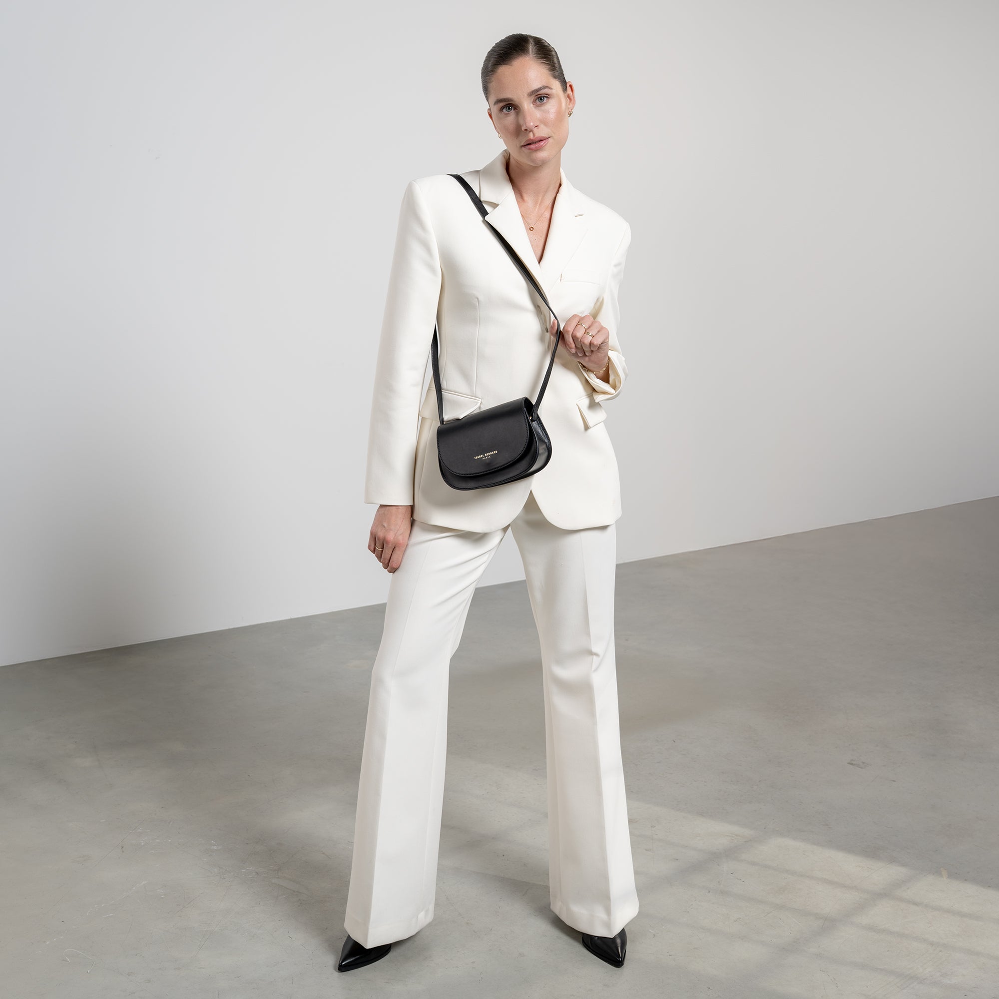 Omarm Parijse elegantie met de Montmartre Manon crossbody tas. Vakkundig vervaardigd uit premium zwart plantaardig gelooid leer, combineert deze tas tijdloze verfijning met praktisch design, waardoor het een essentieel accessoire is voor de moderne, professionele vrouw.