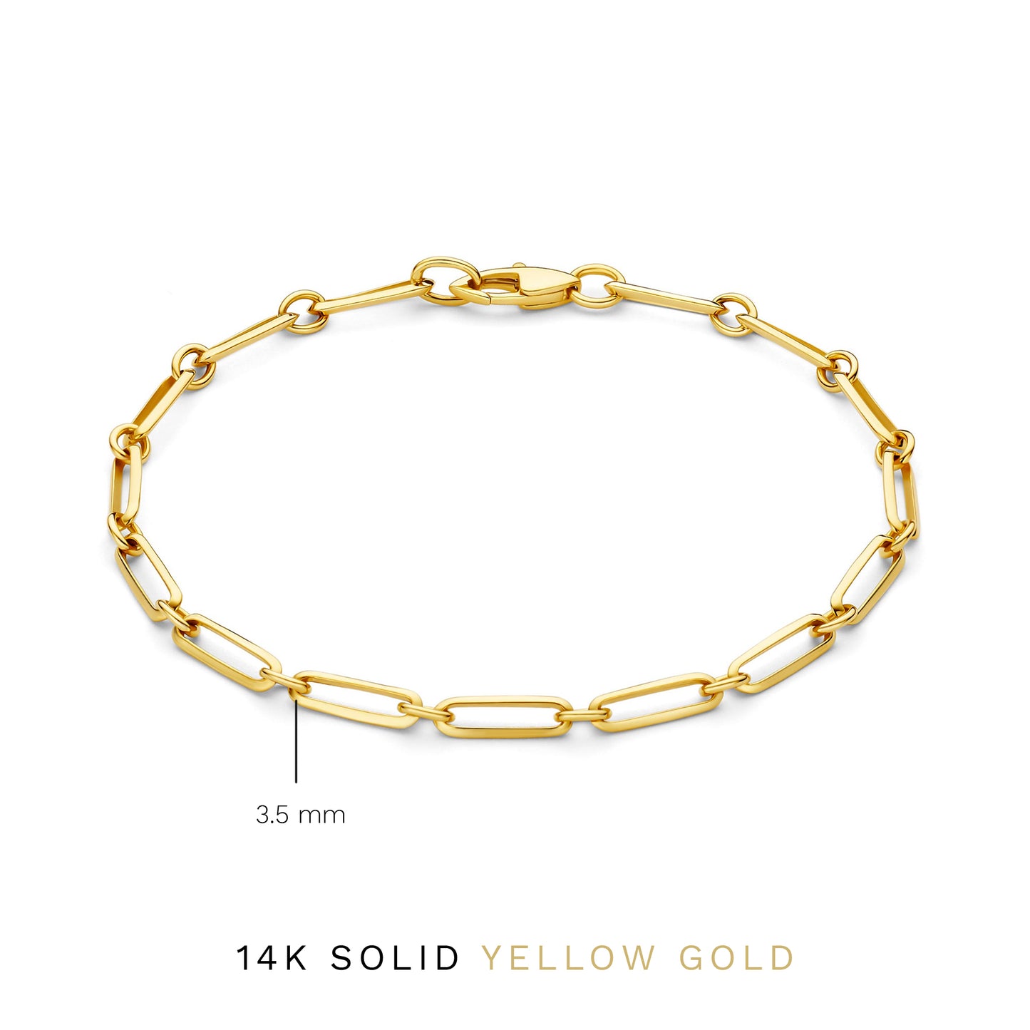 Introducing the Aidee Raissa 14-Karat Gold Link Bracelet, a standout piece from Isabel Bernard's Aidee collection that embodies the timeless elegance and sophistication of Parisian style. This bracelet is meticulously crafted for the modern woman who values both luxury and enduring design.