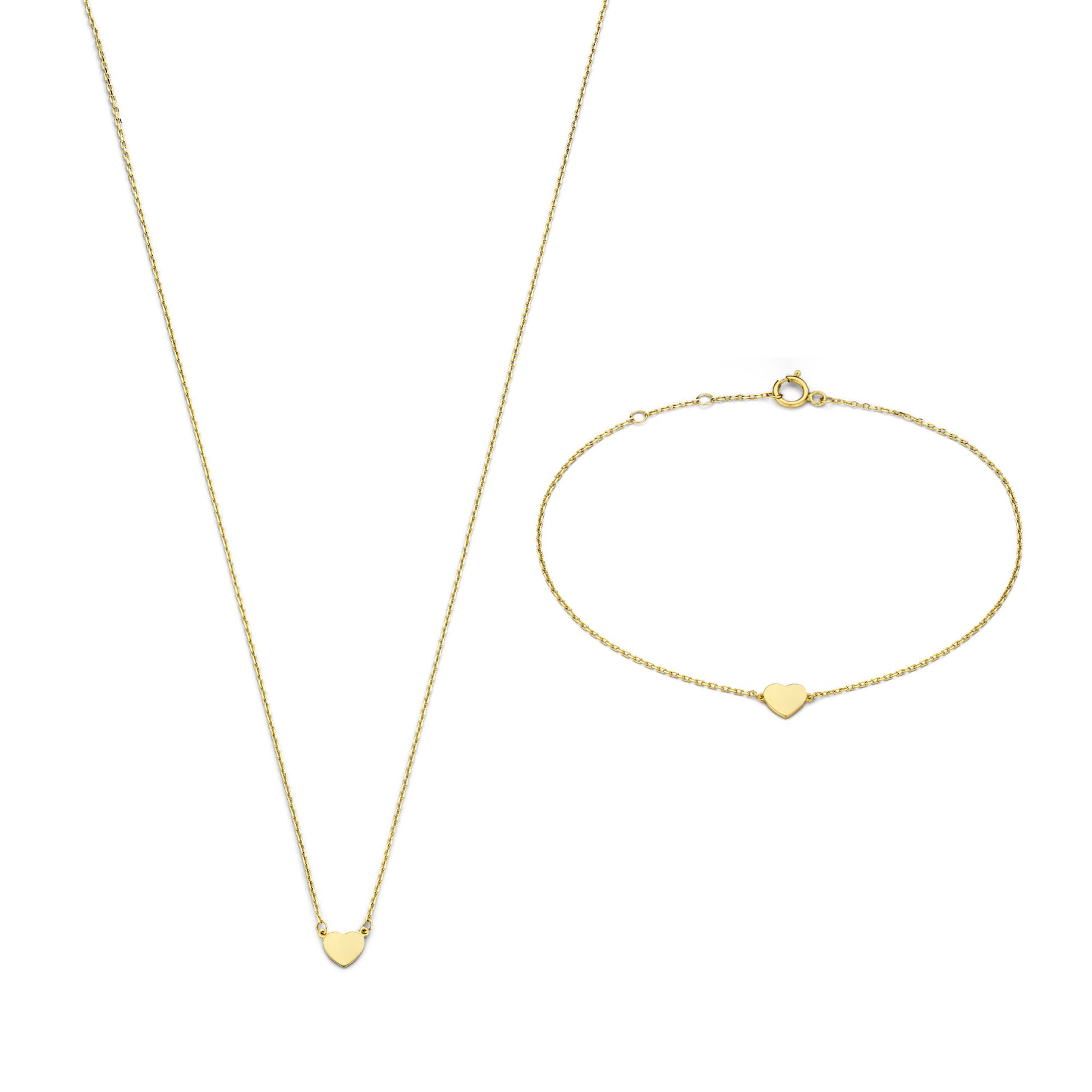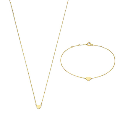 Cadeau d'Isabel 14 karat gold necklace and bracelet set with heart