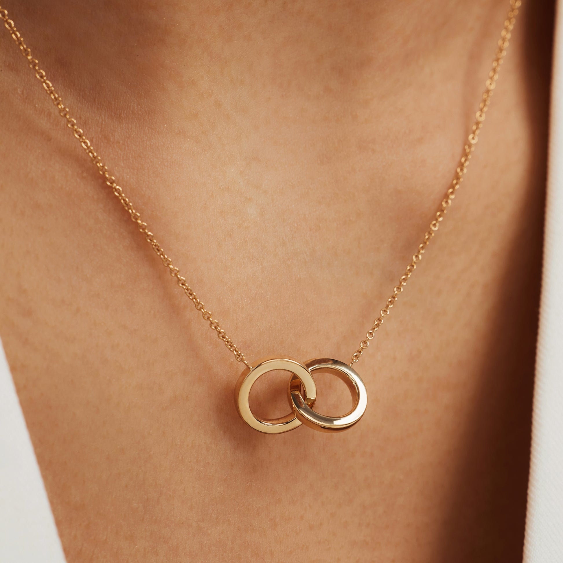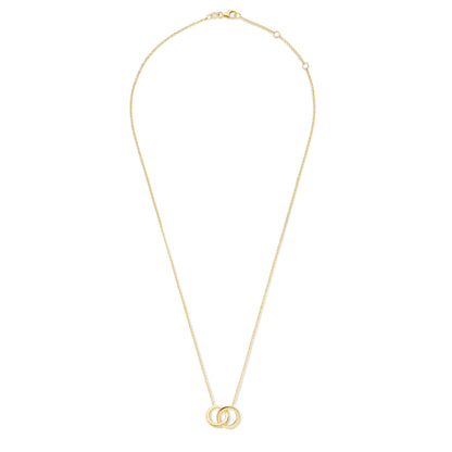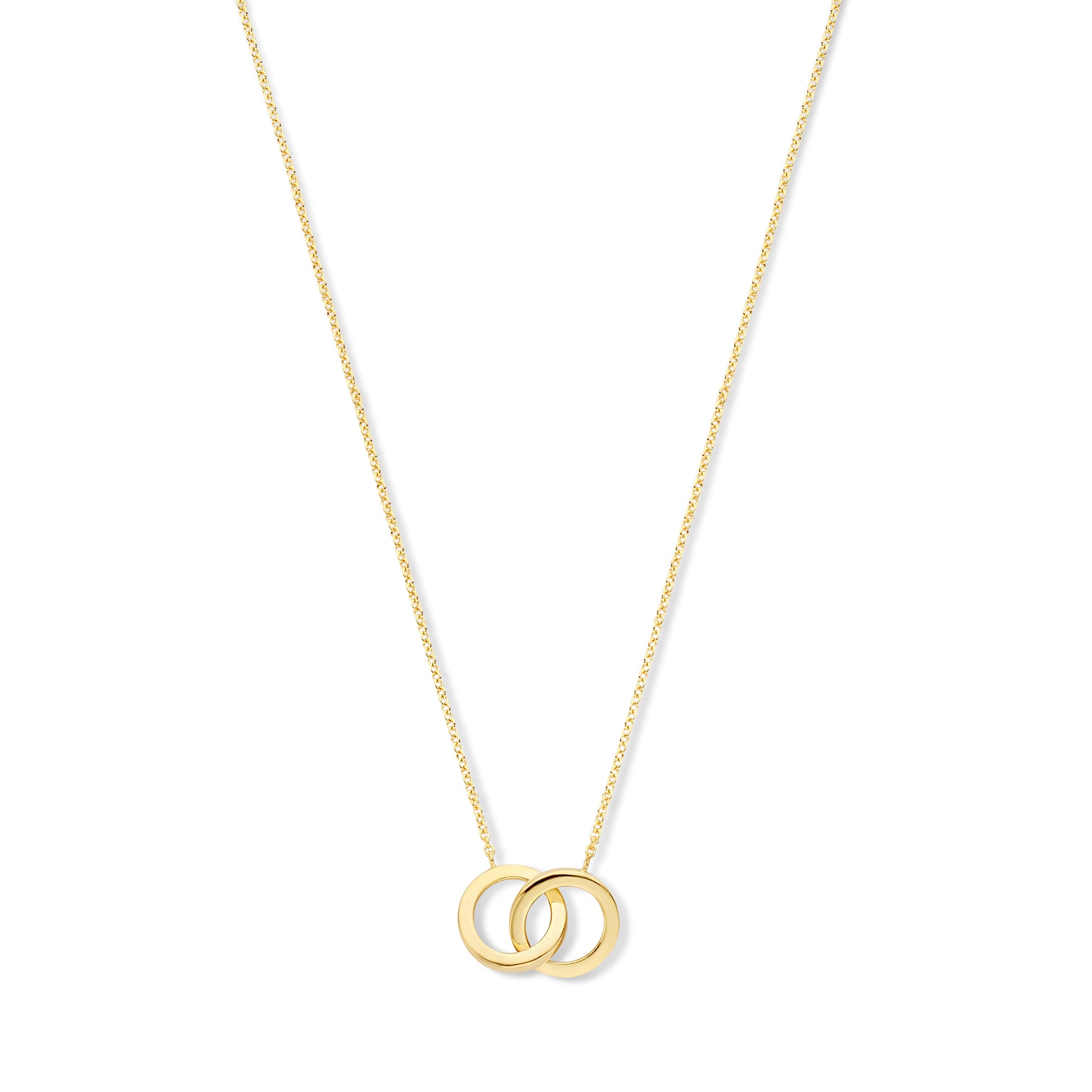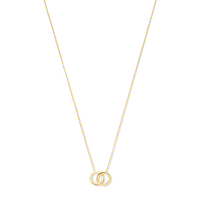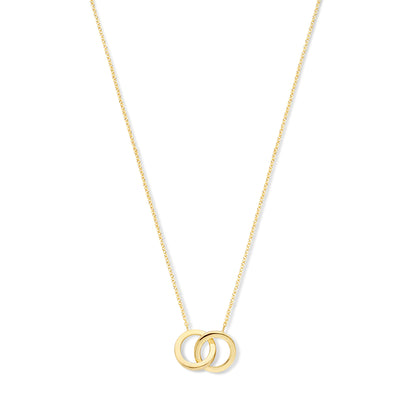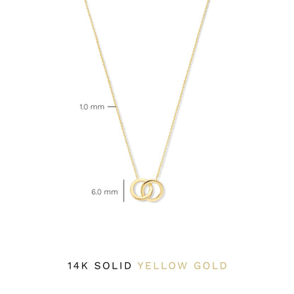 Le Marais Zoë 14 Karat Gold Necklace with Two Rings, a timeless piece from the Le Marais collection. This necklace features two interlocking rings, symbolizing unity and eternity, crafted in 14 karat gold.