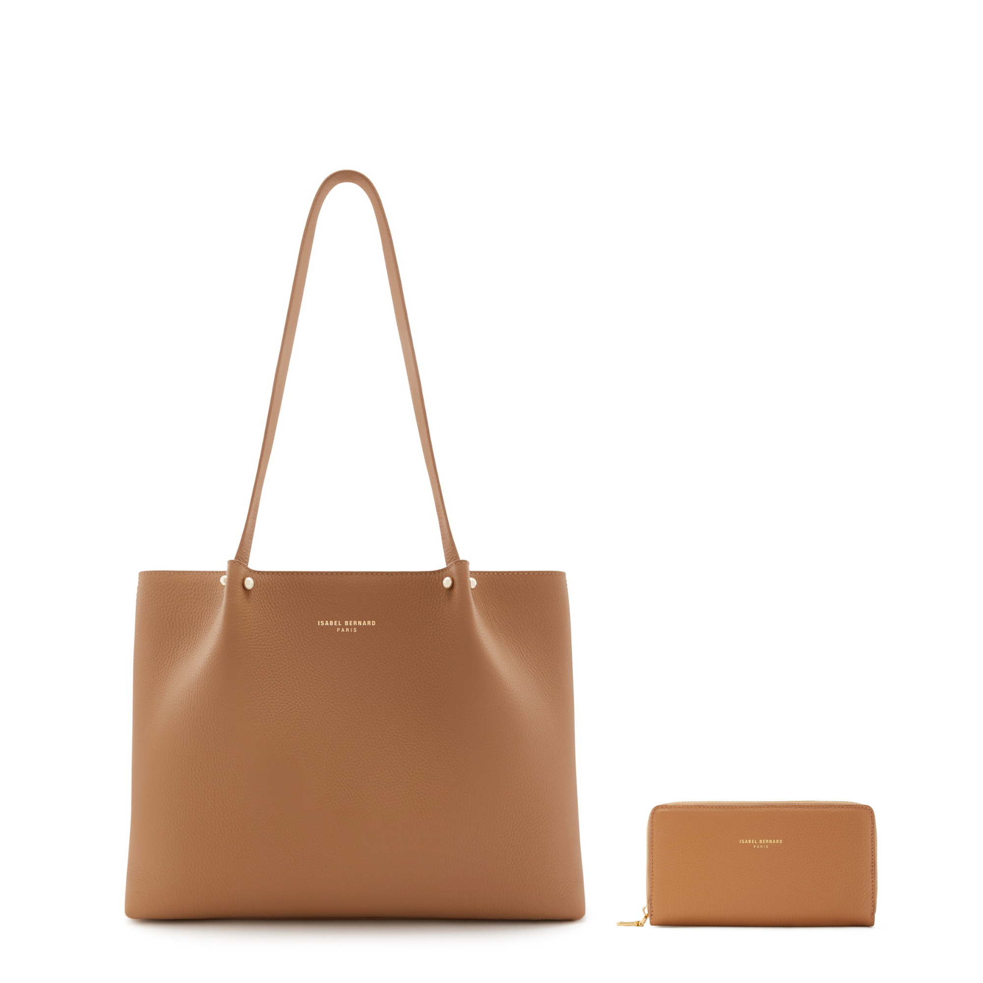Cadeau d'Isabel camel calfskin leather shopper and wallet set