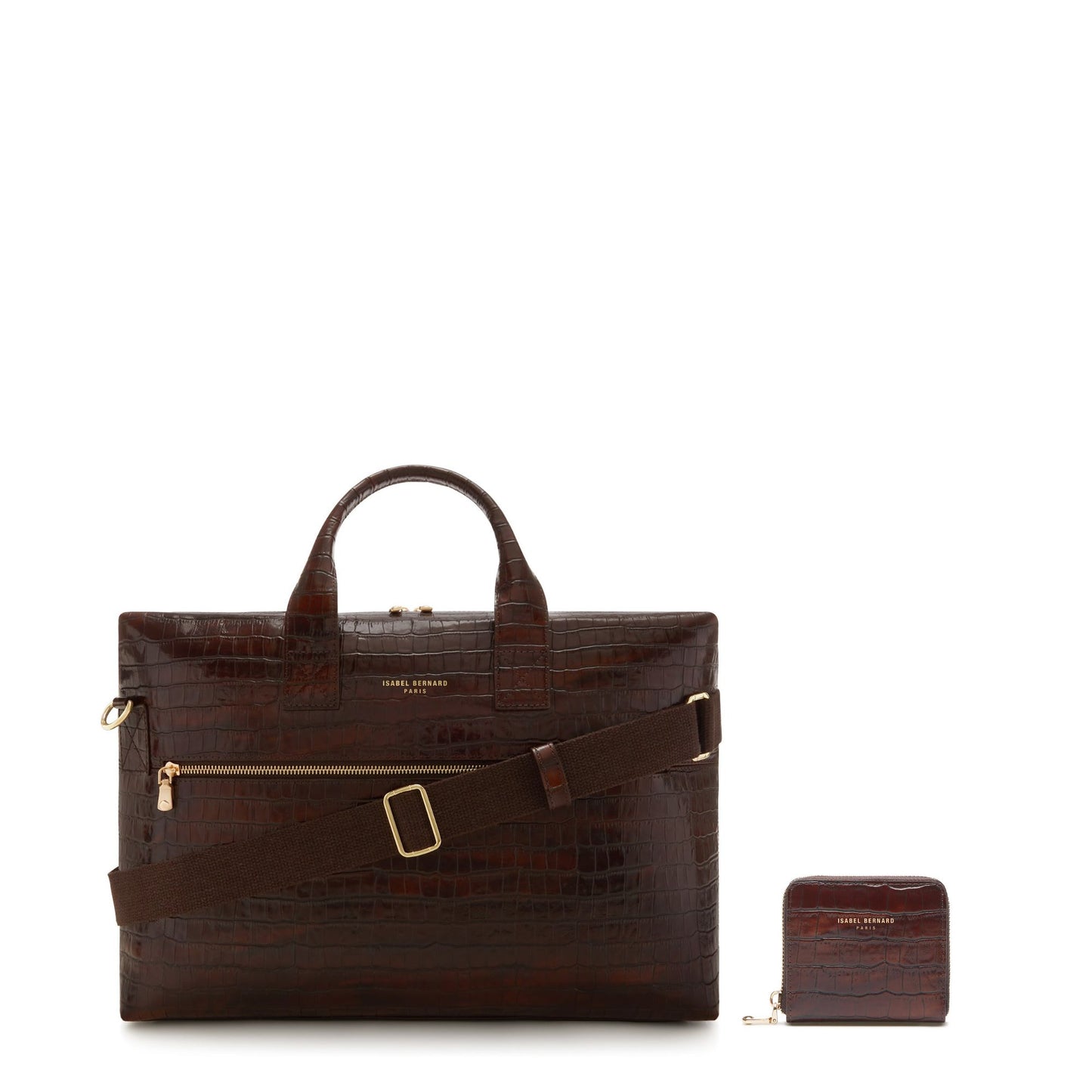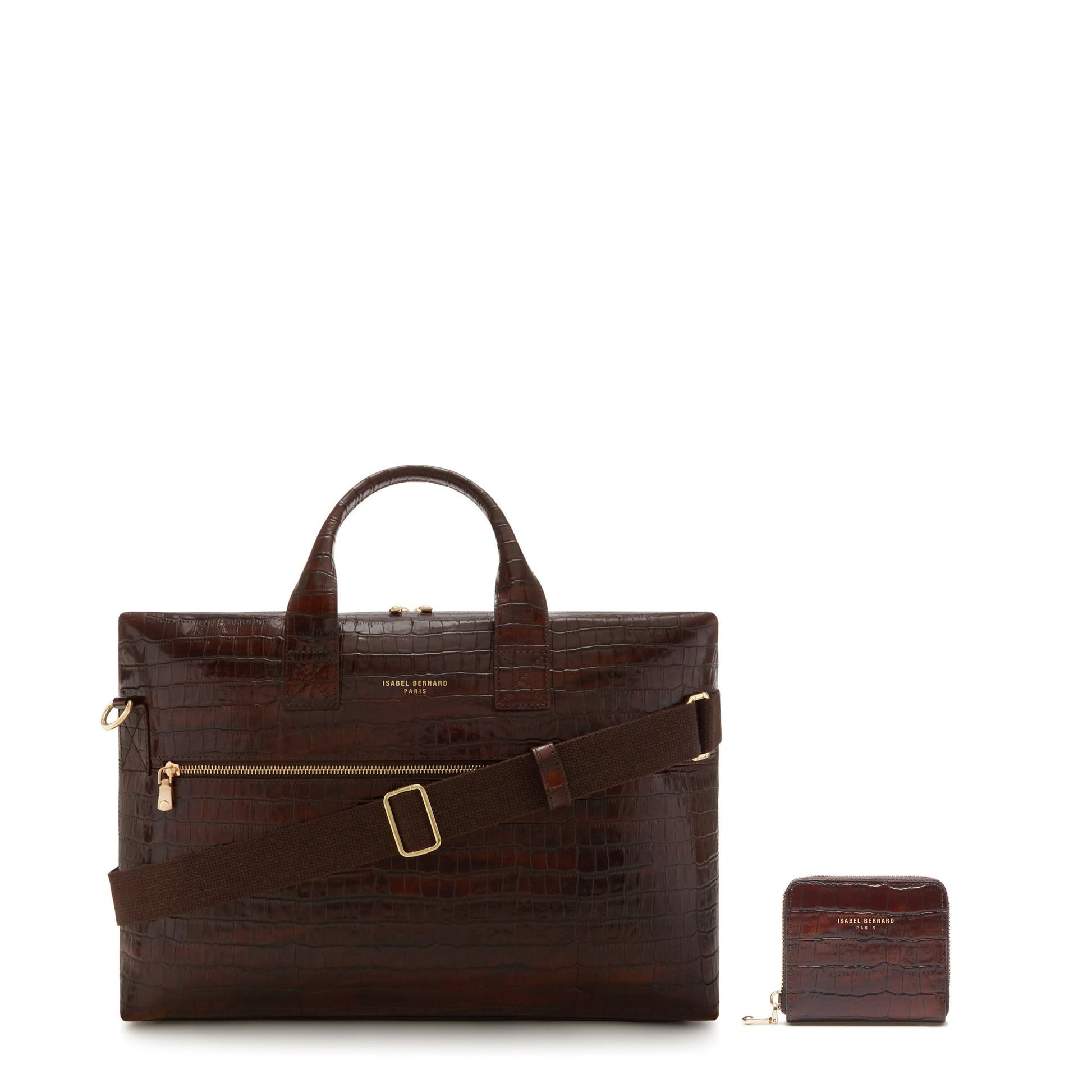 Cadeau d'Isabel croco brown calfskin leather handbag and wallet set