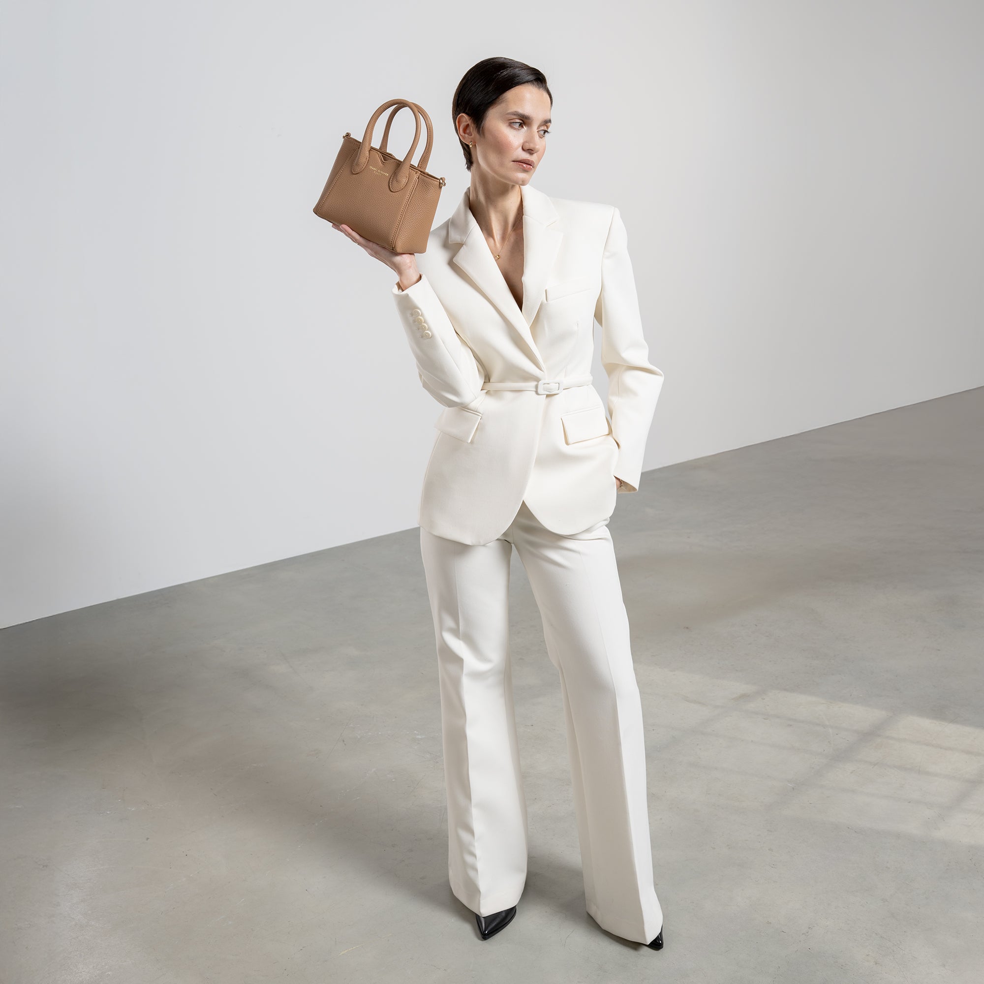 Honoré Cloe Mini Camel Calfskin Leather Handbag, a compact and elegant handbag from the Honoré collection. Made with luxurious camel calfskin leather, this mini bag is perfect for adding a touch of sophistication to any outfit.