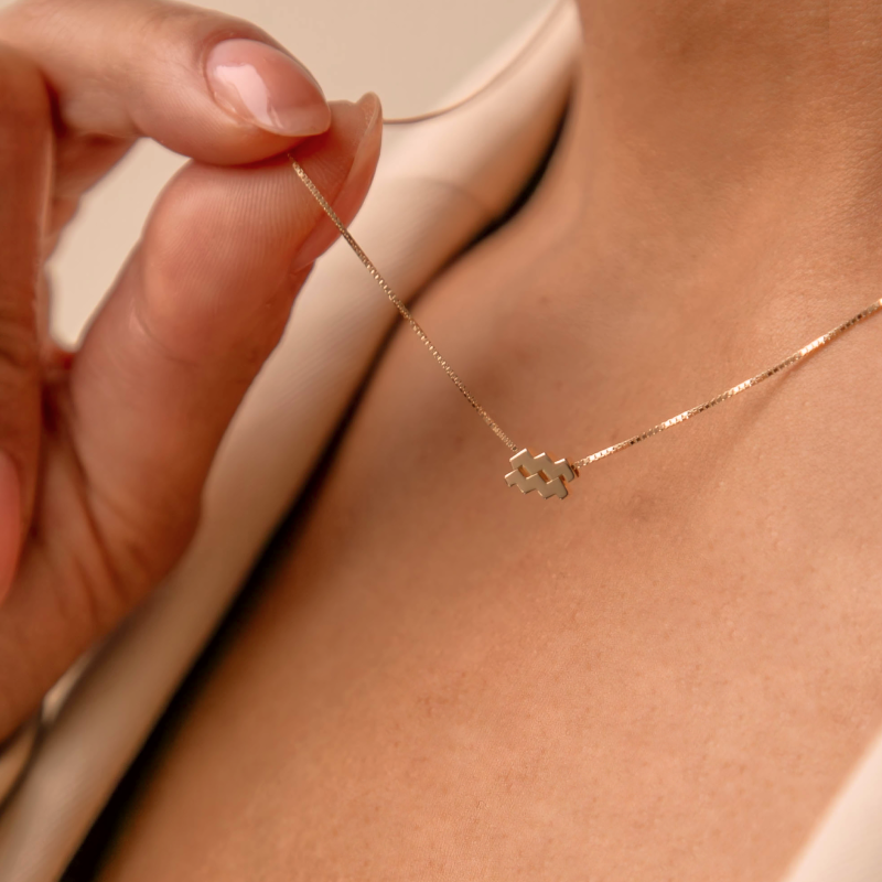 Étoiles d’Or Aquarius 14 Carat Gold Venetian Necklace With Horoscope