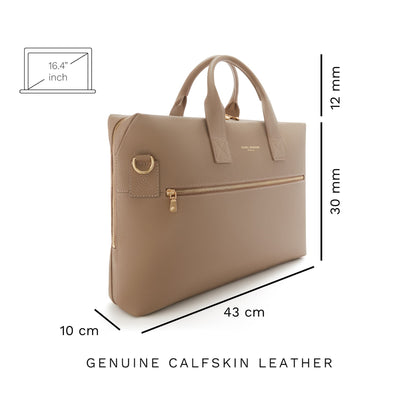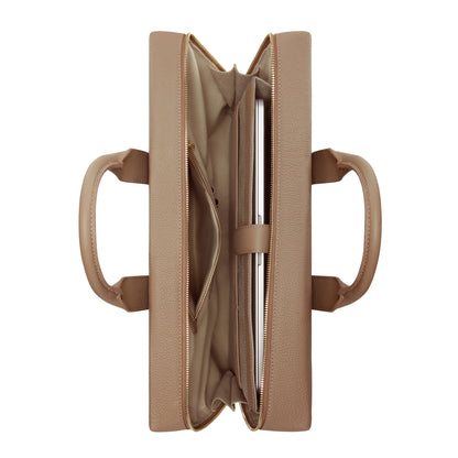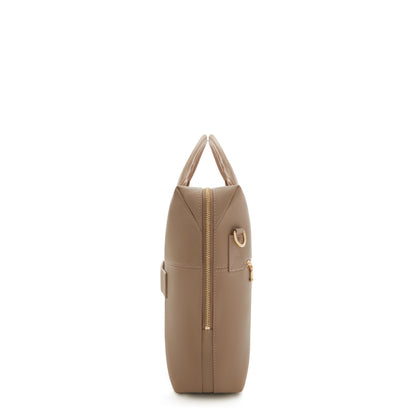 Honoré Anique taupe calfskin leather handbag with 16.4 inch laptop pocket