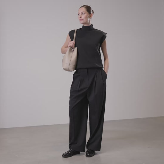 Introducing the Femme Forte Macie shoulder bag, a harmonious blend of timeless design and practical functionality. Crafted from premium taupe calfskin leather, this bag is an essential accessory for the modern, professional woman.