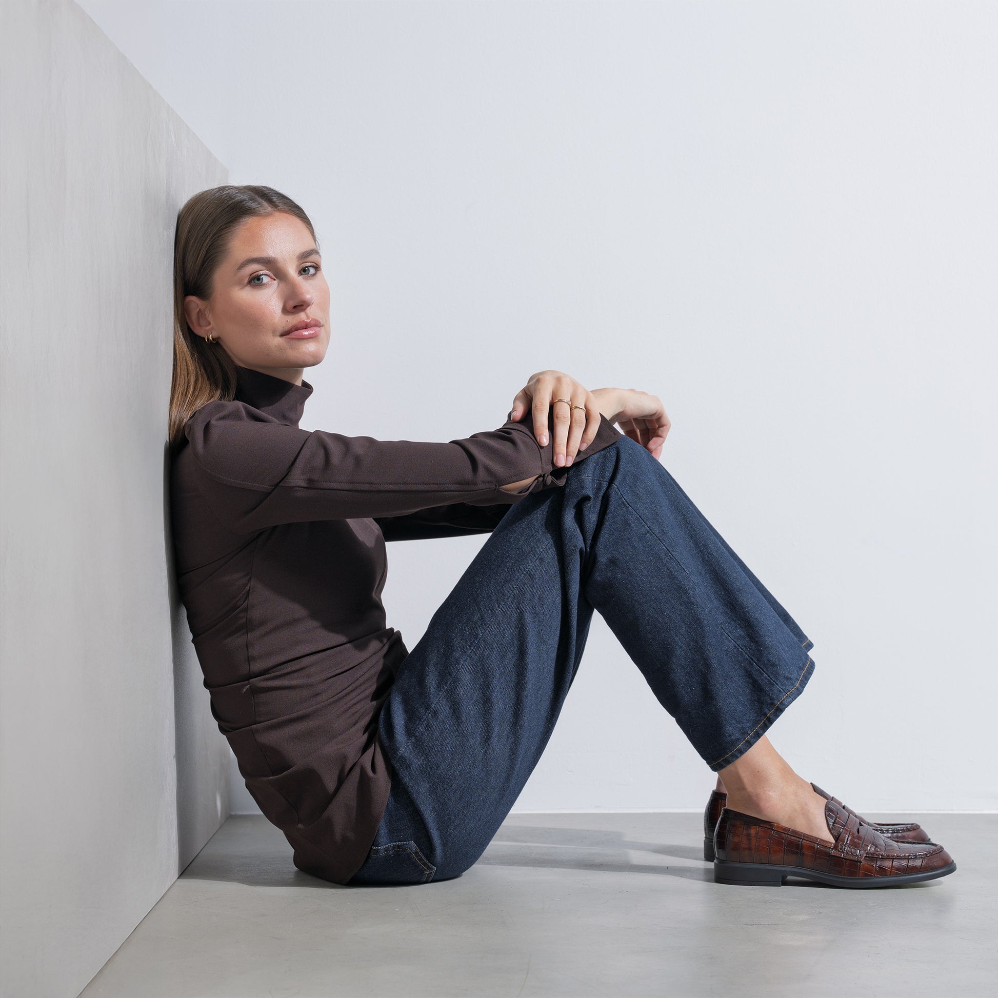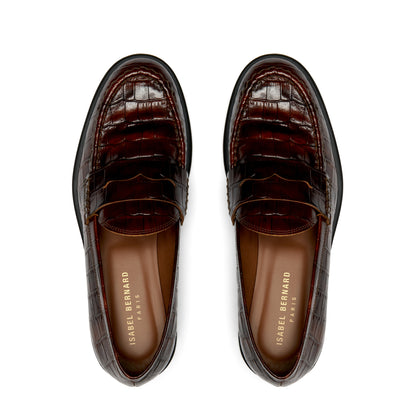 Vendôme Blandine croco brown calfskin leather loafers