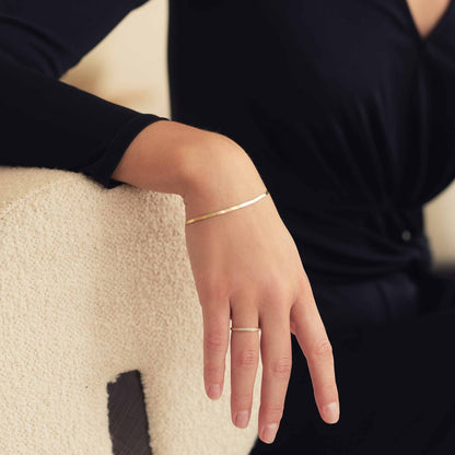 O ouro de 14 quilates oferece o equilíbrio perfeito entre luxo e durabilidade. Com seu rico brilho dourado e resistência duradoura, é ideal para o uso diário sem perder sua beleza. Uma escolha intemporal que combina valor real com elegância sem esforço.