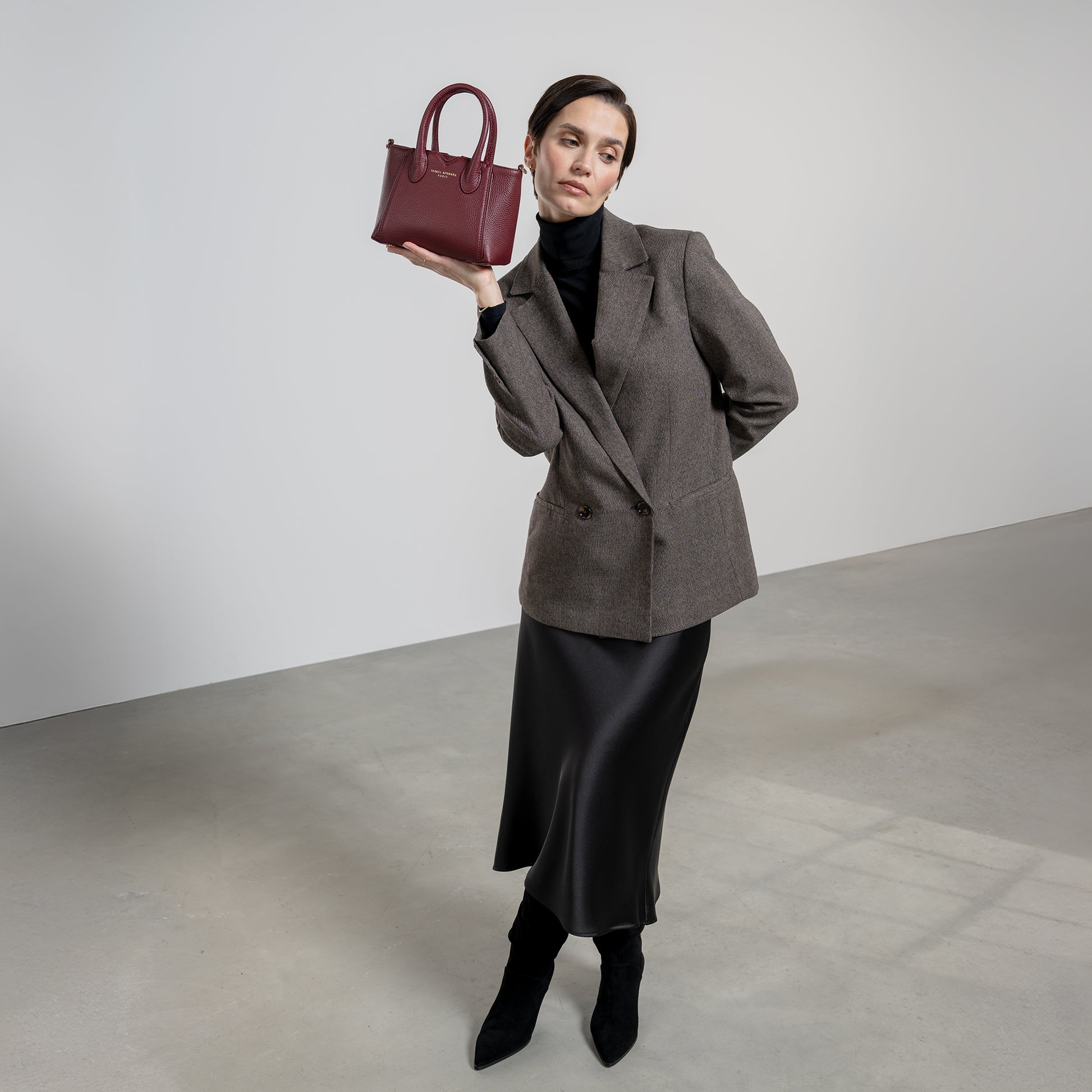 Honoré Cloe Mini bordeaux vermelho mala de mão de couro de vaca
