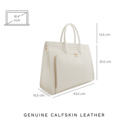 - Elegância coordenada: Concebida em pele de bezerro creme a condizer para uma estética perfeita e polida.